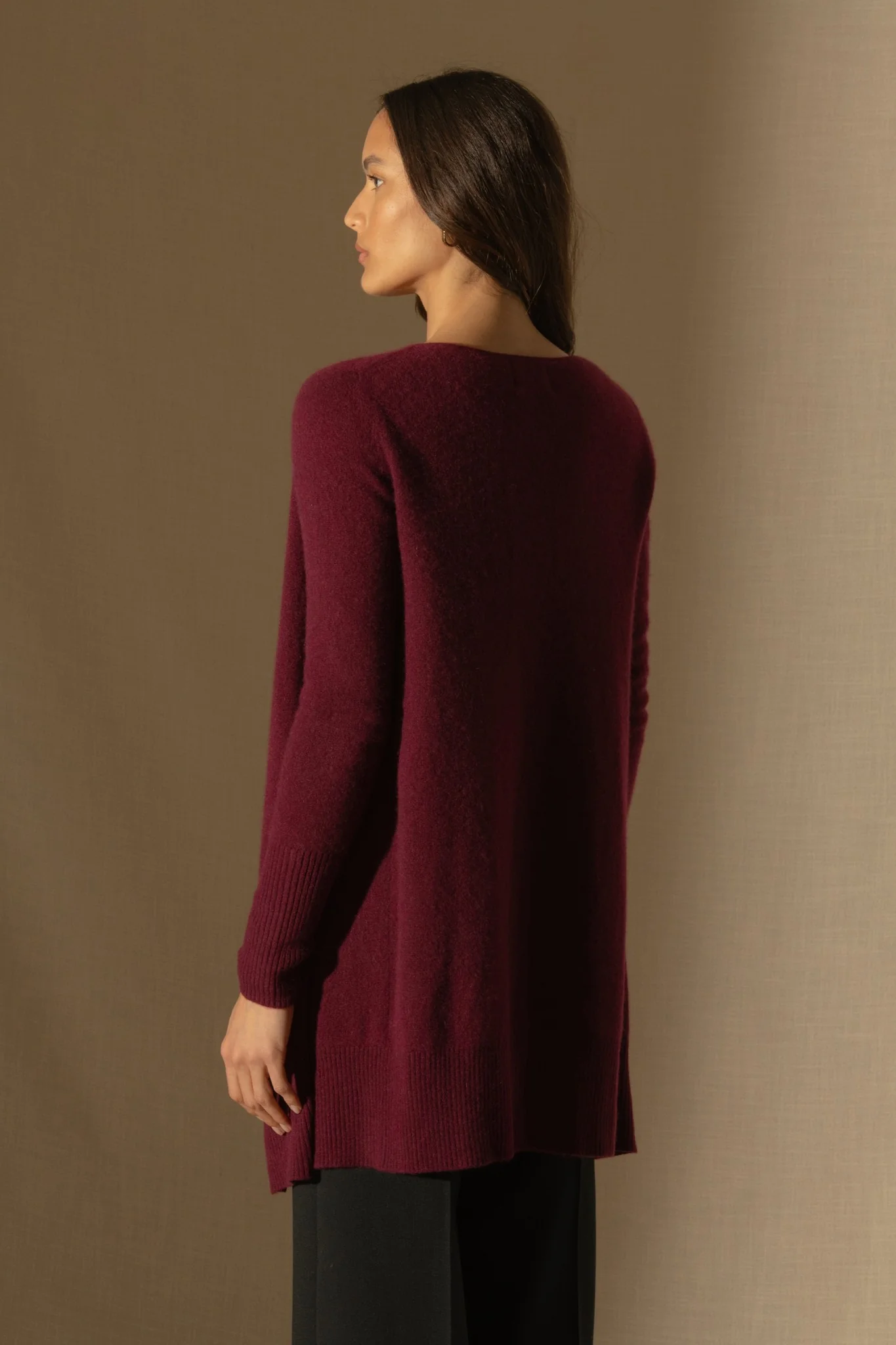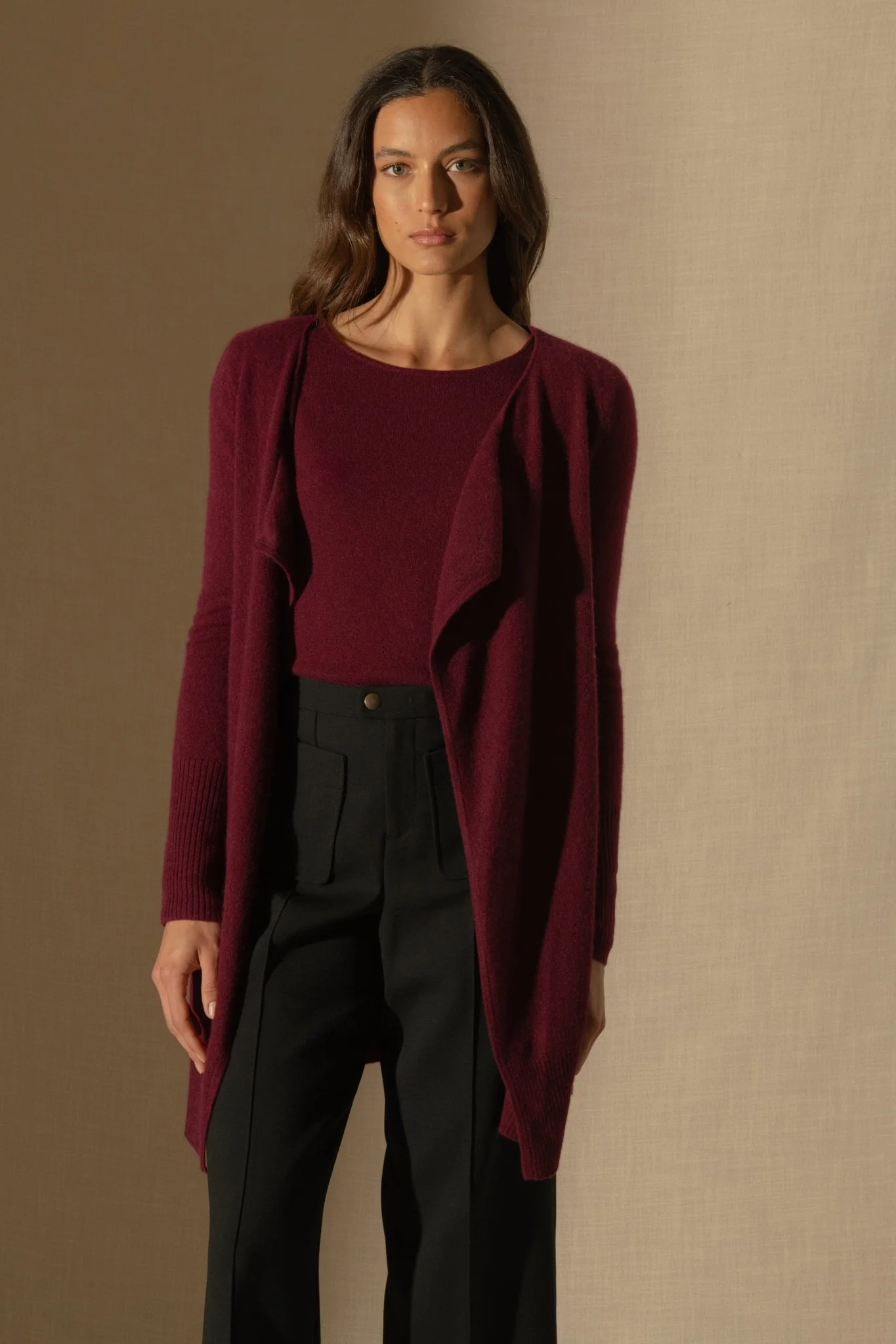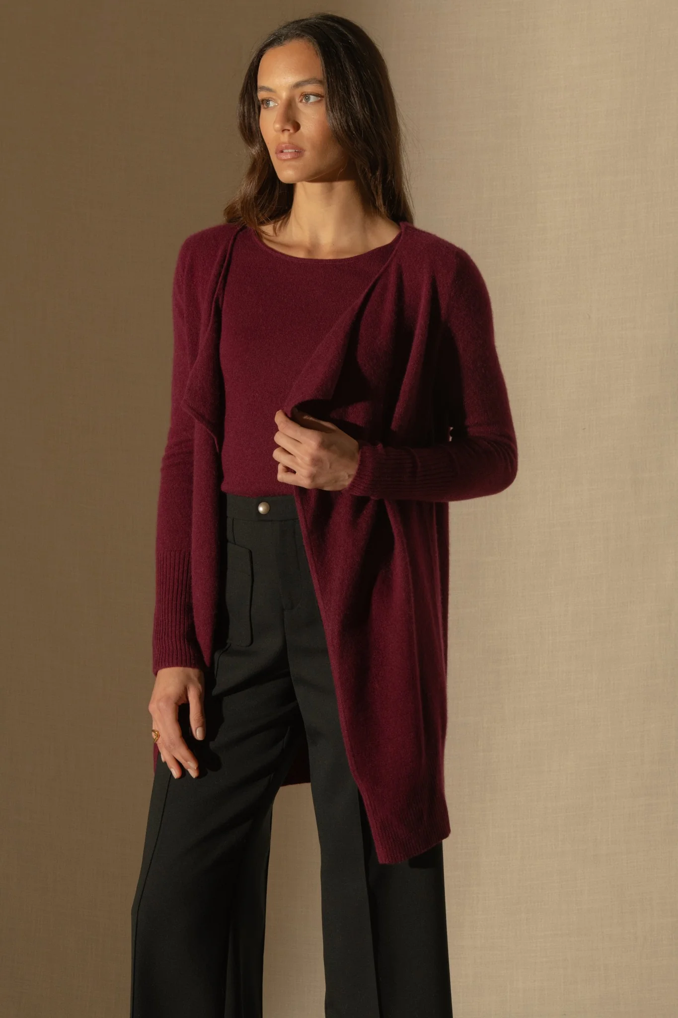 ABIGAIL veste longue bordeaux 100% cachemire