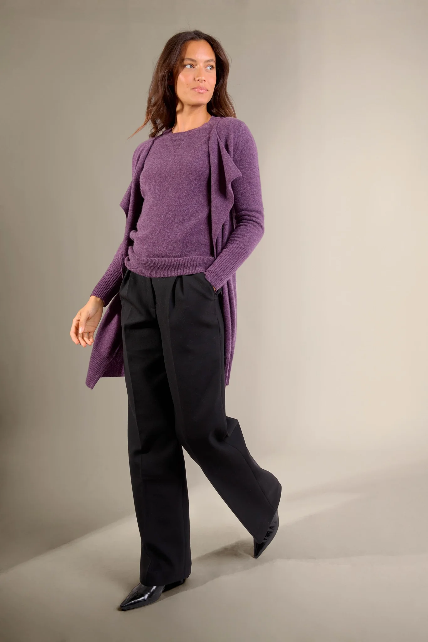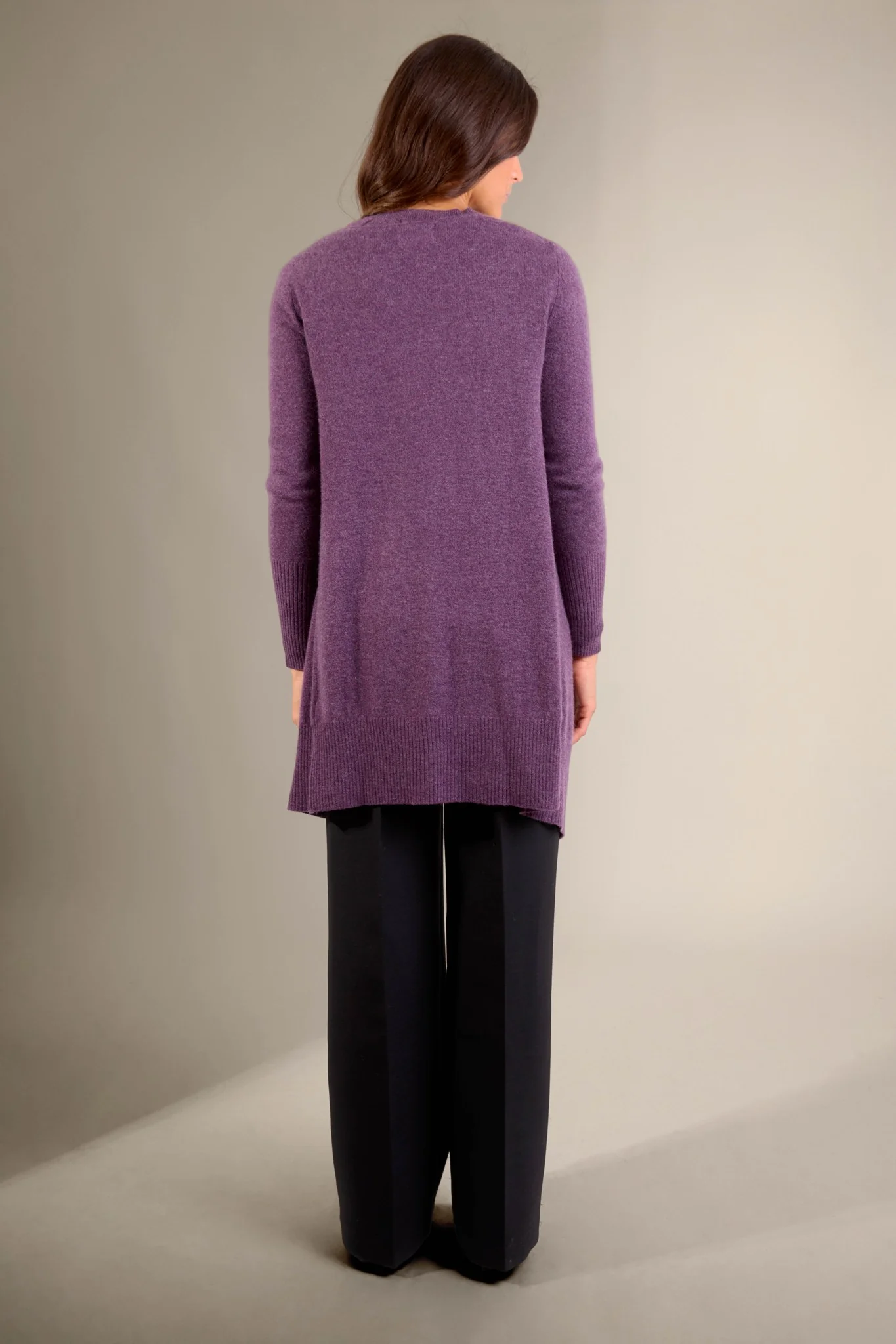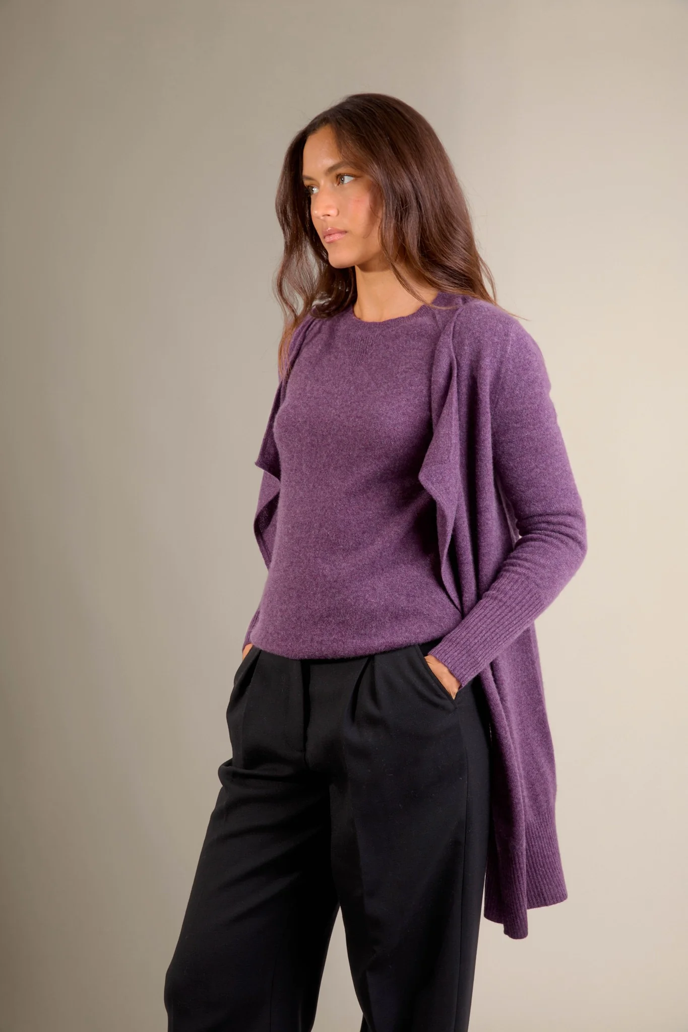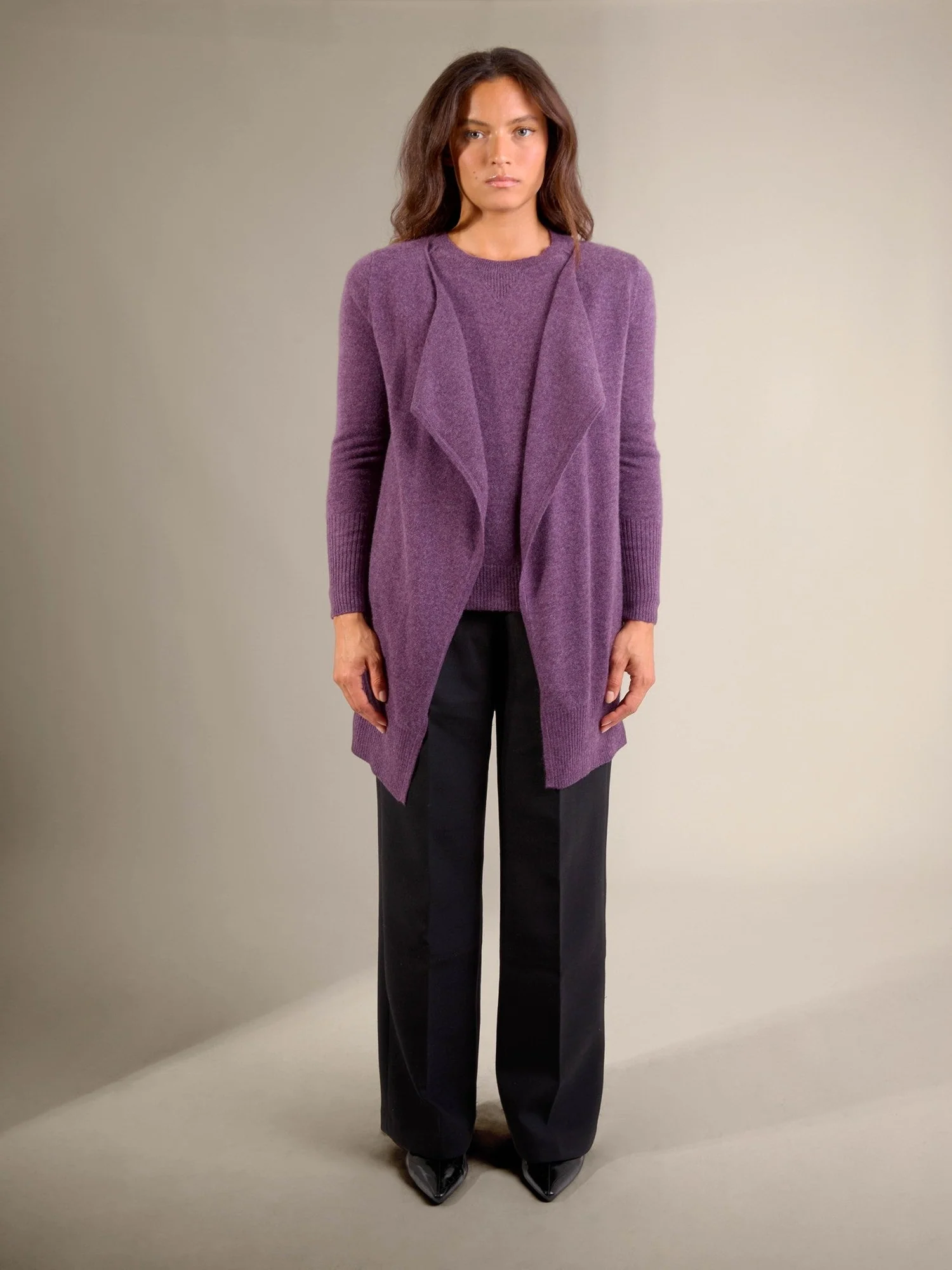ABIGAIL veste longue violet chiné 100% cachemire