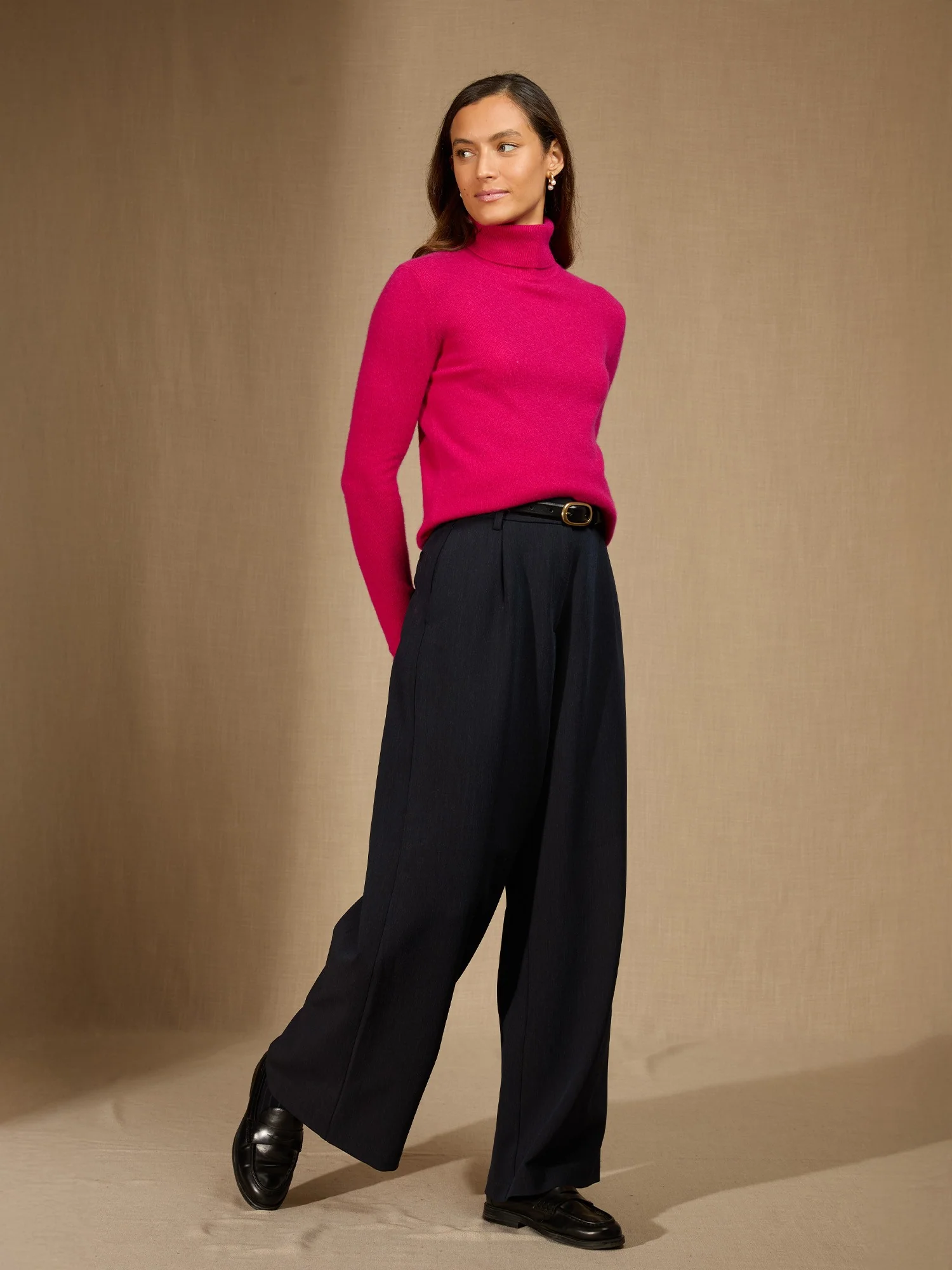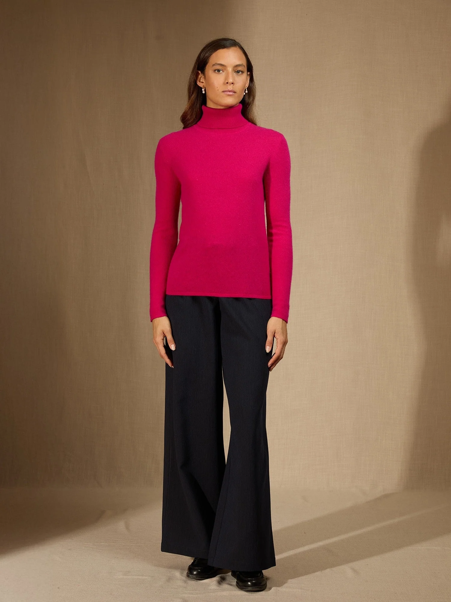 ASHLEY pull col roulé fuchsia 100% cachemire