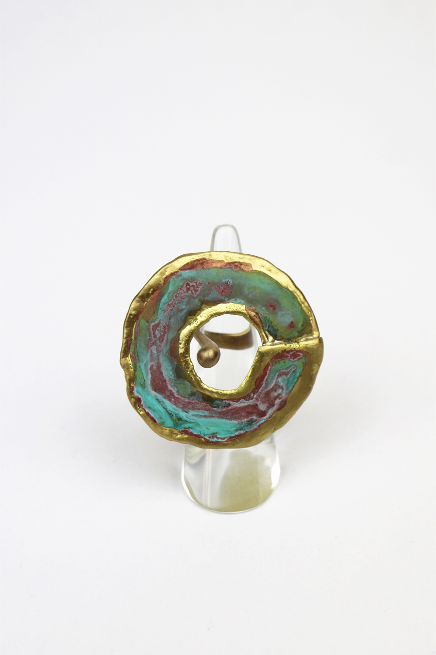 Bague graphique grand cercle en laiton plaqué or, fait main.