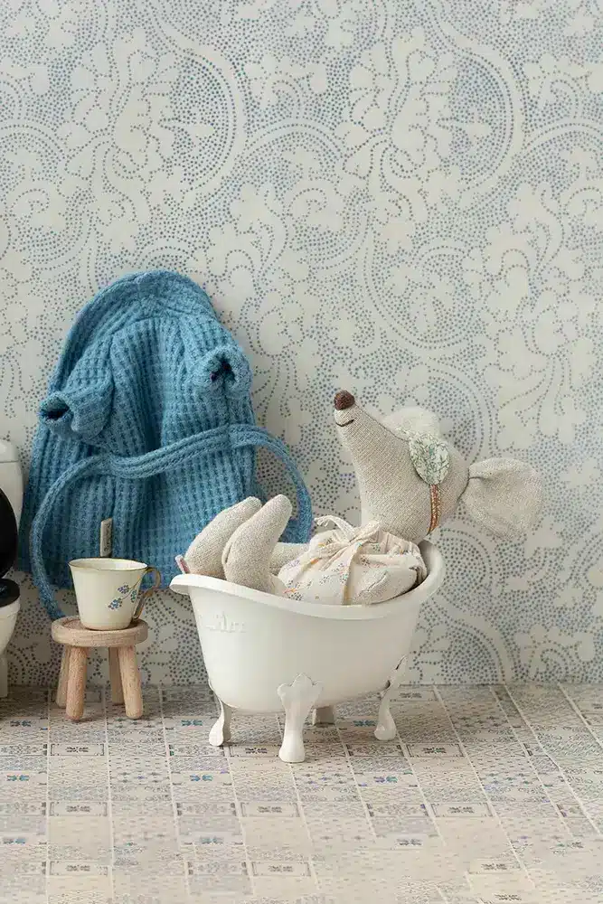 Les souris Maileg pourront prendre un bon bain dans cette baignoire en métal. Elle sublimera la salle de bain de la maison de poupée de votre petit.