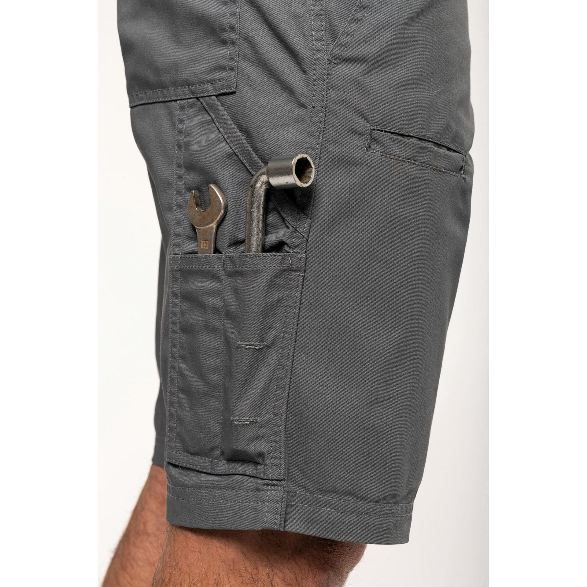 Équipé de trois poches avant et arrière et d’une poche latérale avec pressions cachées, ce bermuda offre un espace de rangement suffisant pour tous vos outils et accessoires essentiels. Que vous travailliez dans les espaces verts ou que vous ayez besoin d’un vêtement de travail court, ce bermuda multipoches est un choix parfait.