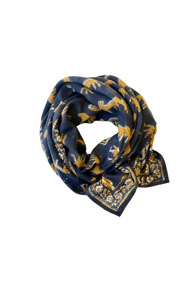 Découvrez le grand foulard au motif Bengale Orage de la marque Apaches Collection. Confectionné en Inde selon la méthode du Block print.