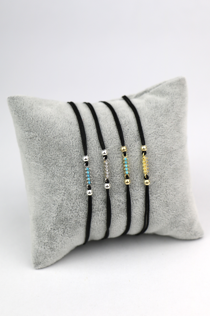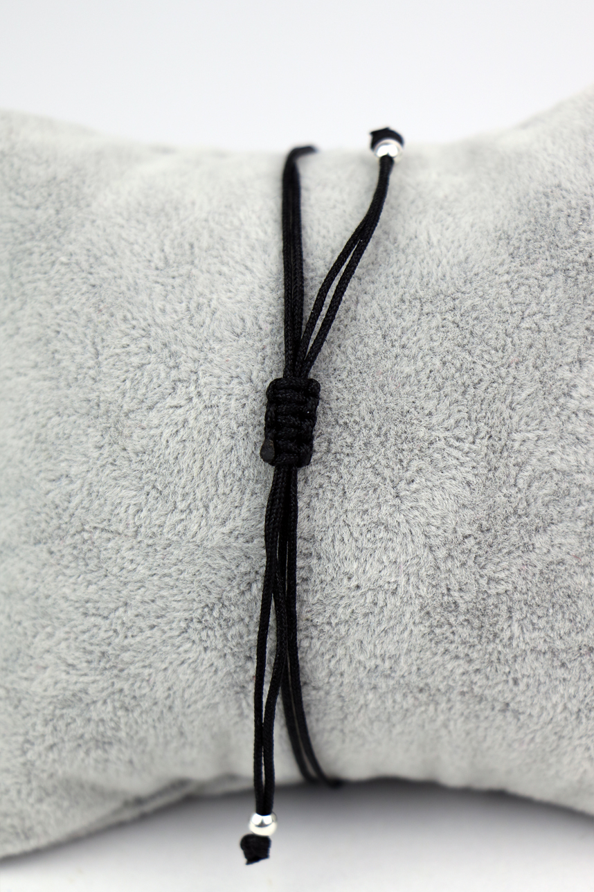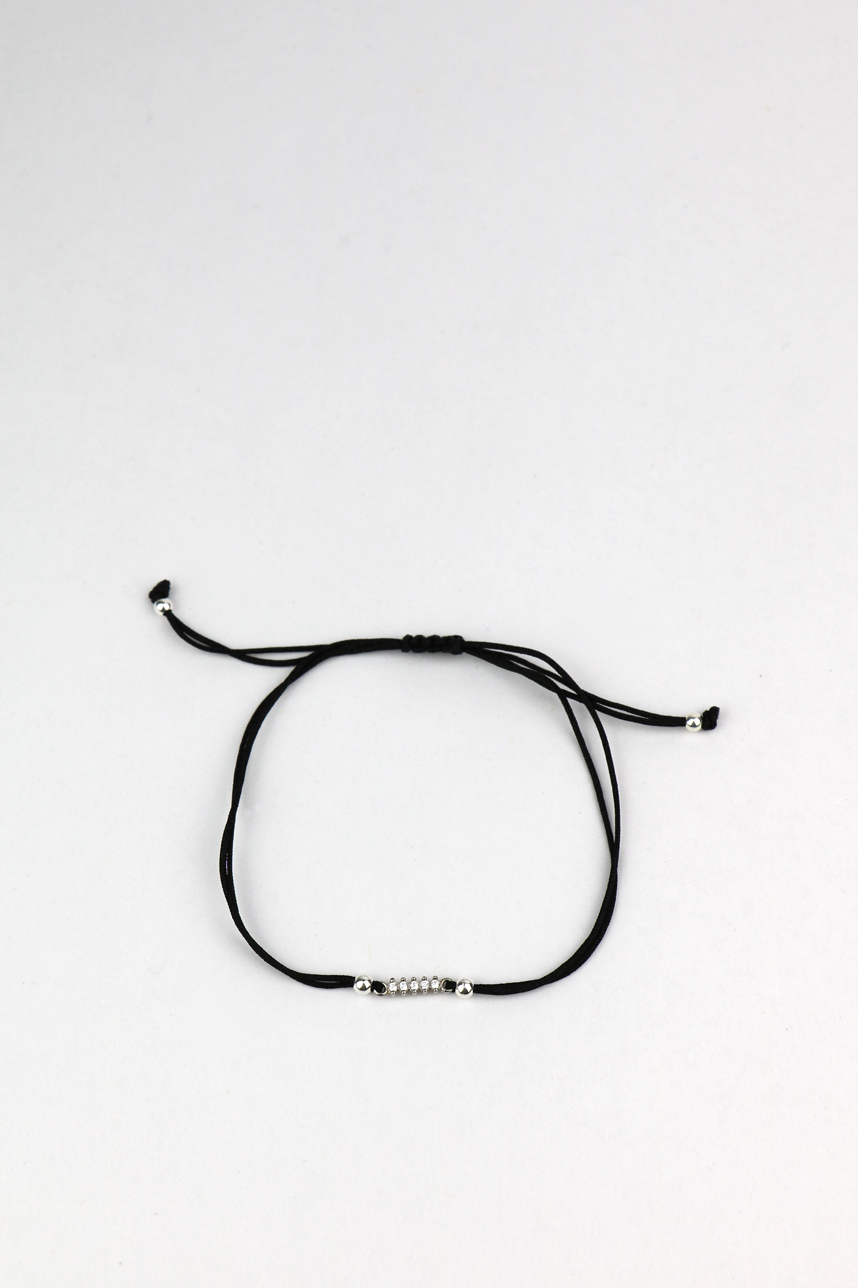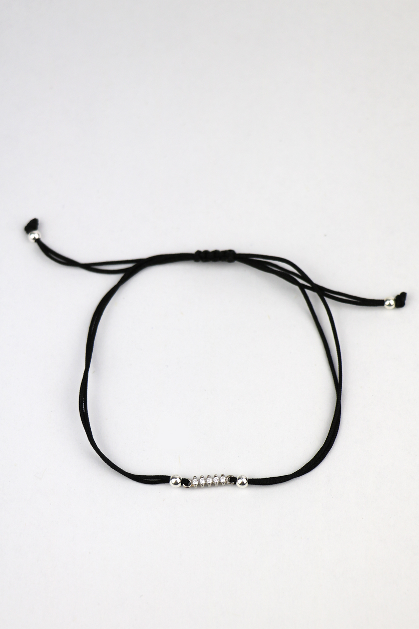 Bracelet cordon ajustable avec un noeud glissant en coton, avec une barre en argent sertie de zircon cubique Blanc.
