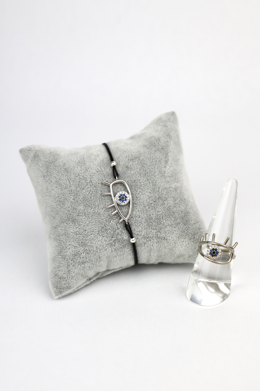Bracelet Cordon Oeil Grec en Argent
