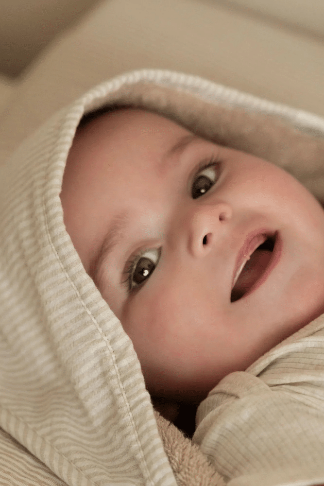 Enveloppez votre petit dans la chaleur et la douceur avec cette cape de bain. Fabriquée à partir de 100% coton biologique pour une sensation délicieusement douce et confortable. La capuche offre un confort supplémentaire et une sécurité après le bain. Comme si votre petit n’était pas déjà assez mignon ! La serviette a une belle couleur et une capuche avec un joli motif pour une touche de charme supplémentaire.