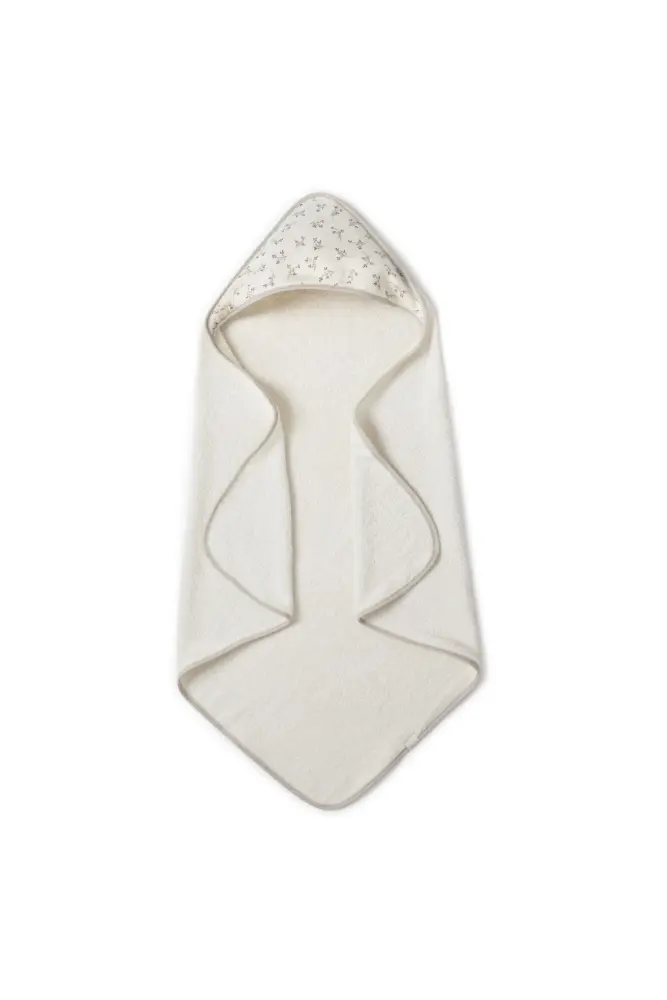 Une jolie serviette pour la sortie de bain de bébé en éponge de coton moelleux. La capuche permet d’envelopper votre enfant de douceur !
