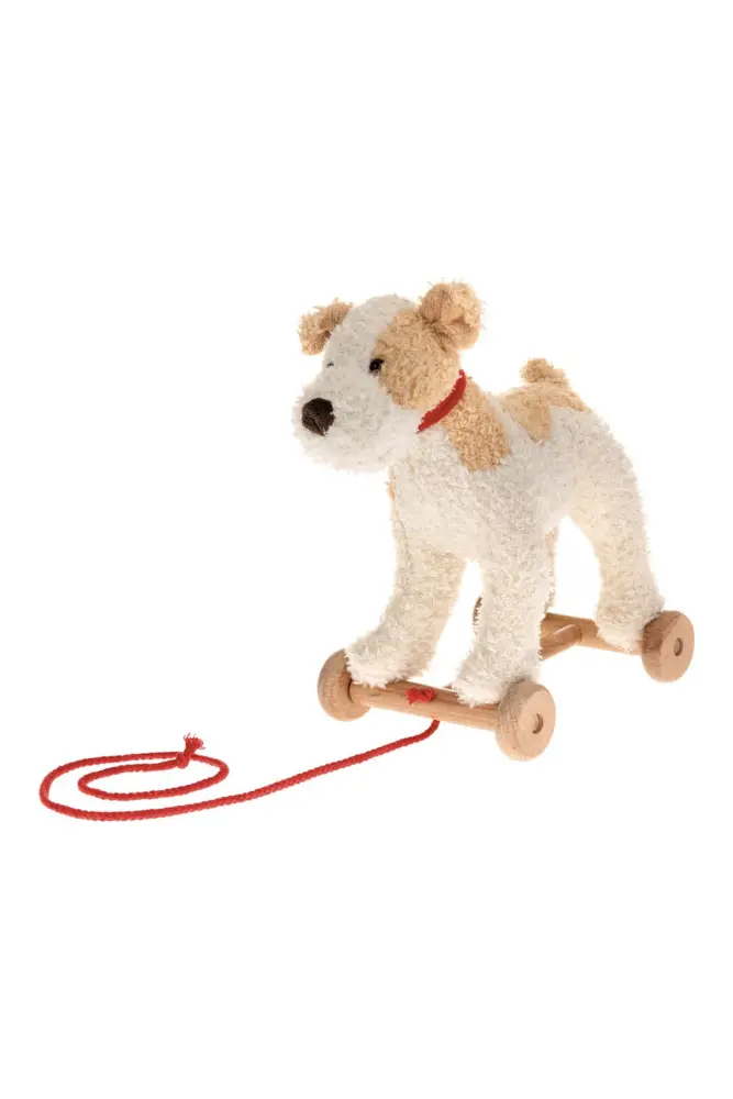 Et voici Eliot le chien sur ses petites roulettes en bois ! Cet adorable chien en peluche est prêt à suivre son petit maître partout. Avec son look vintage et un poil très très doux pour les gros calins, les enfants l’adorent.