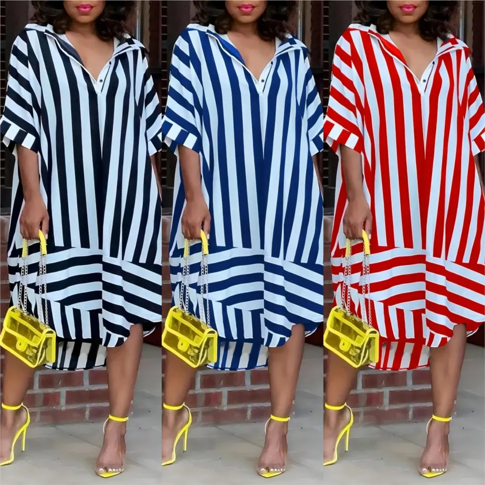 Adoptez un style estival avec la robe chemise Chloé, une pièce légère et fluide parfaite pour les journées ensoleillées. Son imprimé rayé intemporel, ses manches courtes confortables, et sa coupe ample offrent une allure décontractée tout en restant élégante. Facile à porter, cette robe polyvalente s’adapte aussi bien à une tenue de plage qu’à une sortie en ville.
