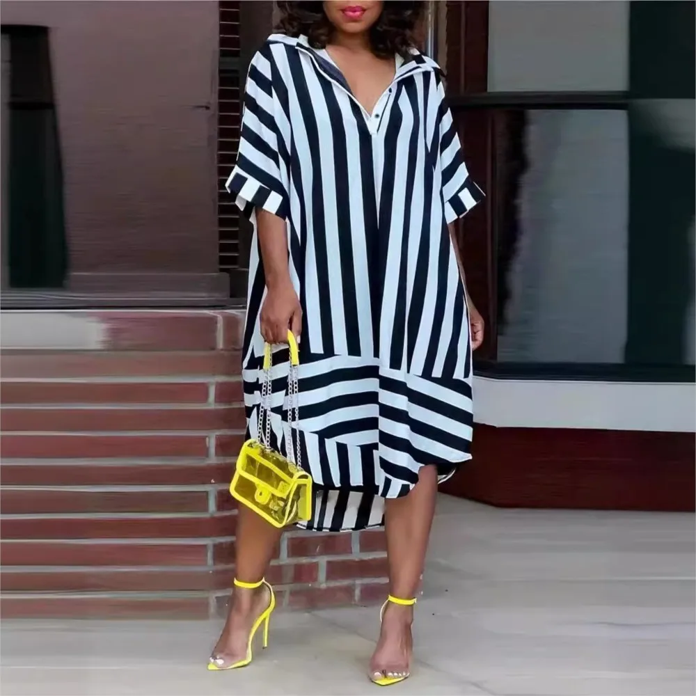 ✓ Style décontracté et chic : Une robe chemise ample et boutonnée pour une silhouette fluide et tendance.