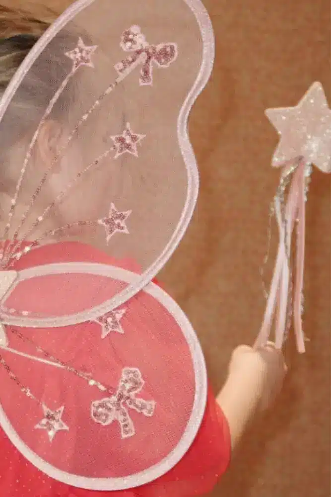 Des jolies ailes de fée avec une baguette magique pour répandre de la magie autour de soi. Un costume féerique qui promet des heures de jeu et d’imagination.