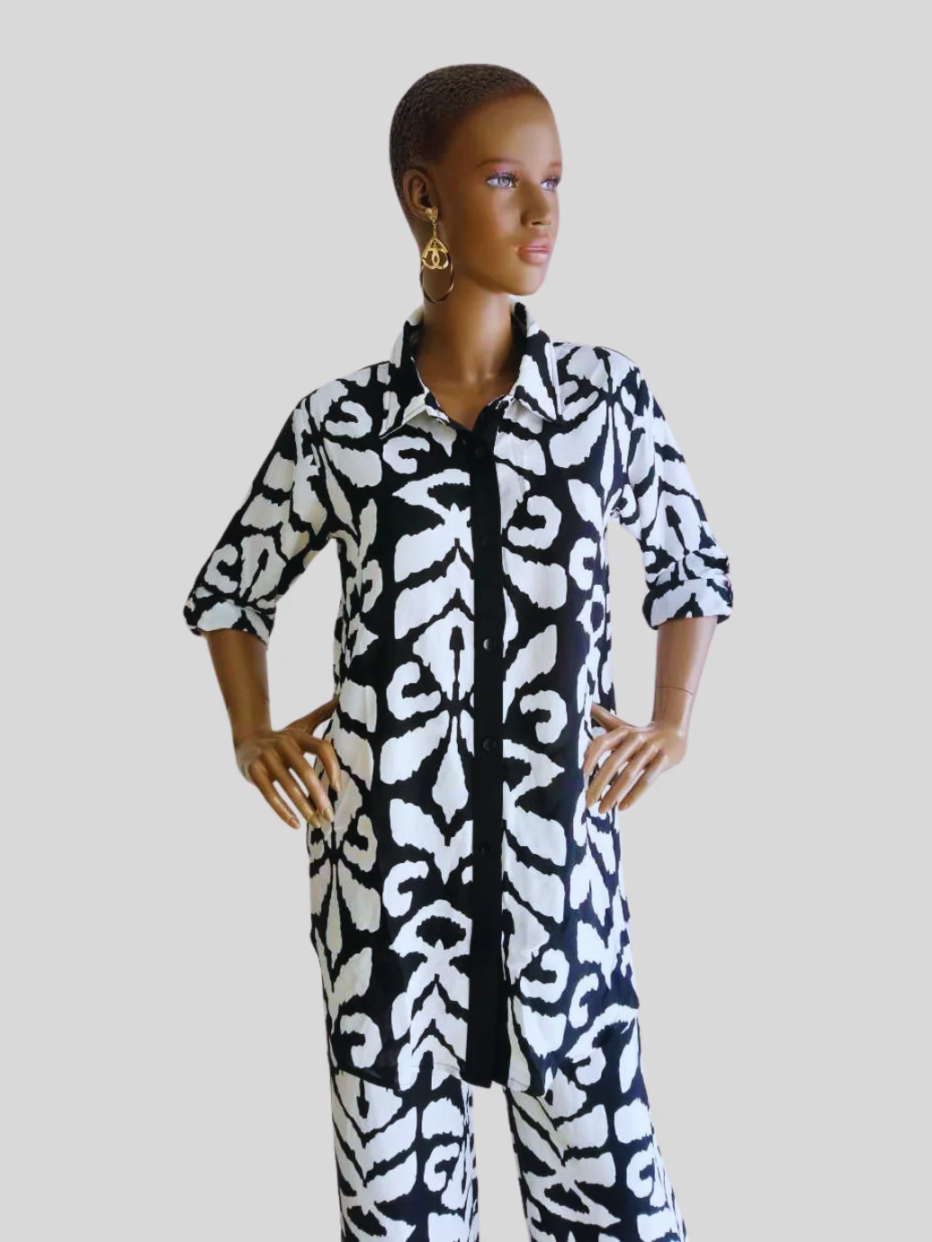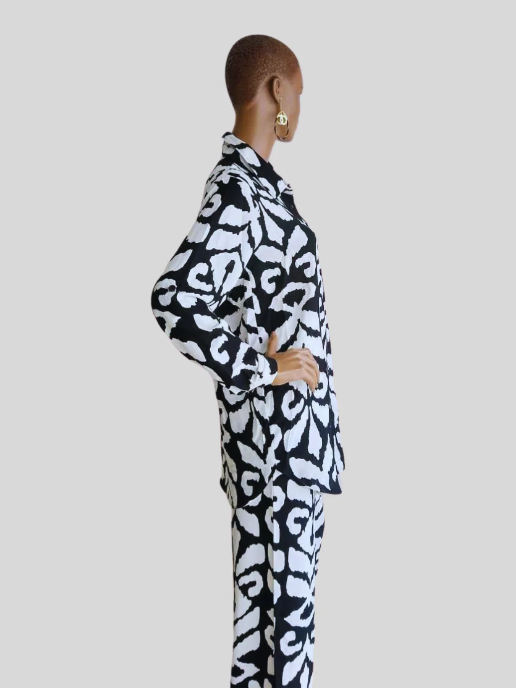 Ensemble chemise et pantalon NOIR BLANC imprimé