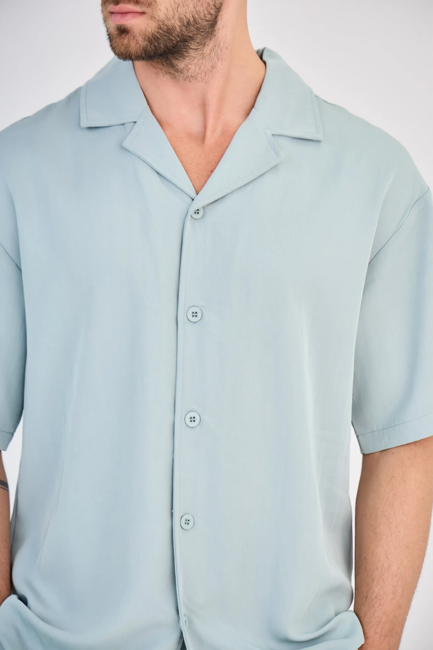 – Chemise manches courtes à col cubain