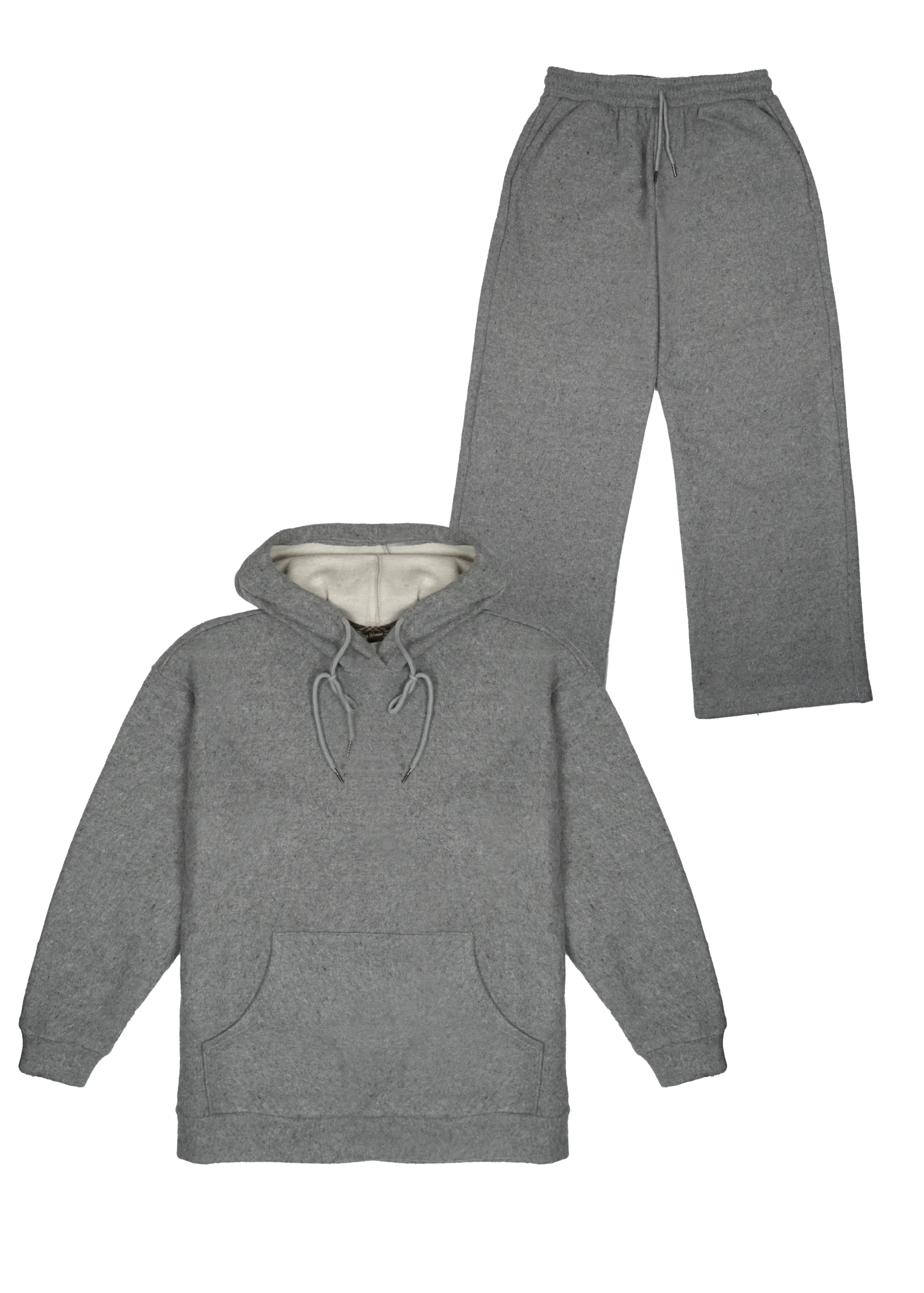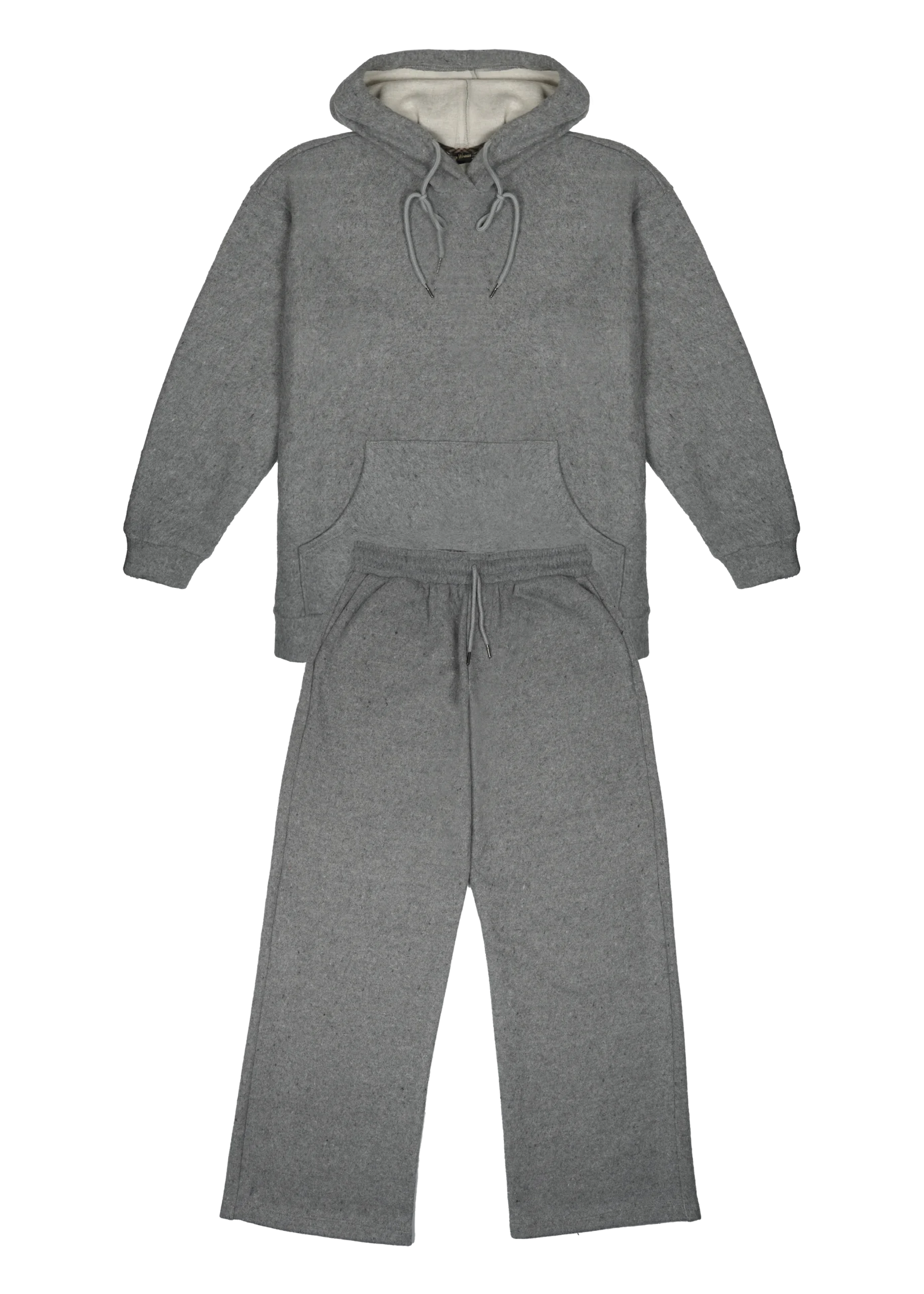 Hoodie gris à capuche molletonné et pantalon large décontracté. Le confort ultime pour le sport, la maison ou un look streetwear tendance. Coton épais.
