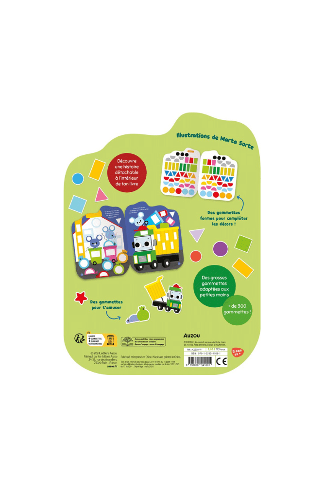 Partez à l’aventure avec le petit camion-poubelle ! Grâce à plus de 300 gommettes colorées, complétez les décors et aidez-le dans son histoire. Une activité amusante à faire dans un cahier détachable, idéale pour stimuler l’éveil et la motricité des petits curieux !