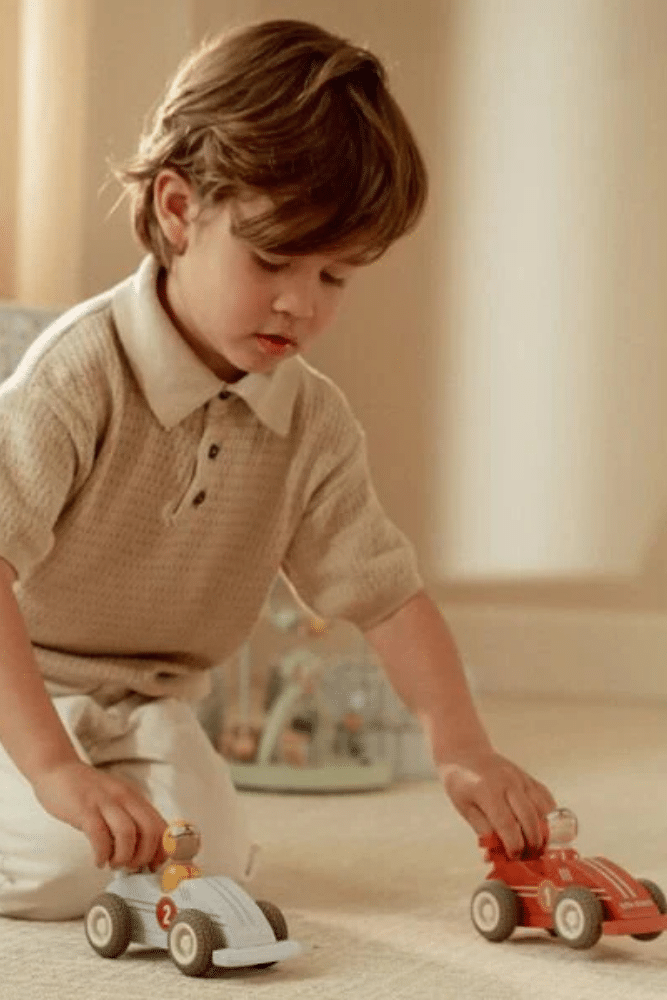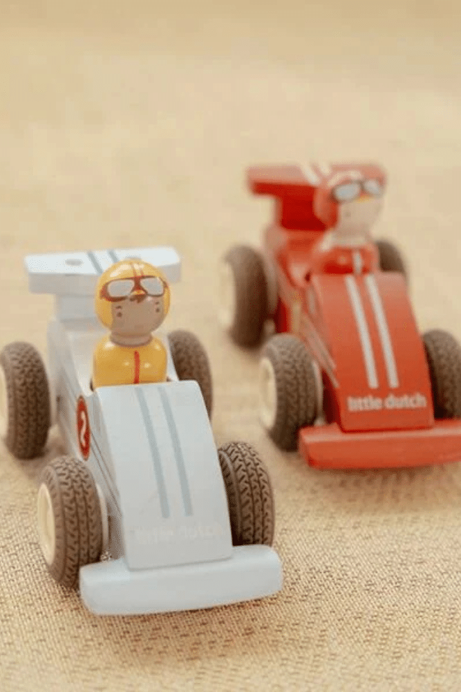 Ce set de voitures de course à rétrofriction offre un plaisir de jeu sans fin. Tirez les voitures vers l’arrière, relâchez-les et regardez-les partir à toute vitesse. Chaque voiture a un joyeux pilote peg-doll que vous pouvez échanger, rendant le jeu de rôle encore plus amusant. Grâce à la construction en bois solide et aux roues en caoutchouc, les voitures roulent en douceur sur le sol. Un ajout passionnant à la collection de jouets des petits amateurs de course. En route vers la ligne d’arrivée !
