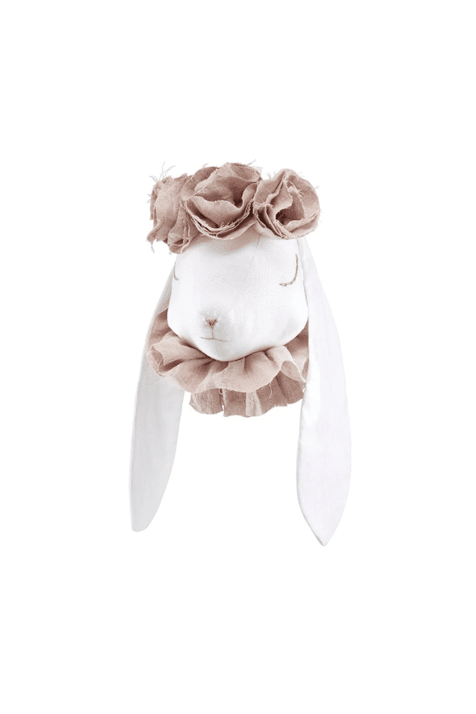 Le lapin en lin avec sa couronne de fleurs ! Nous adorons son look qui apportera une belle touche dans la chambre de votre enfant.