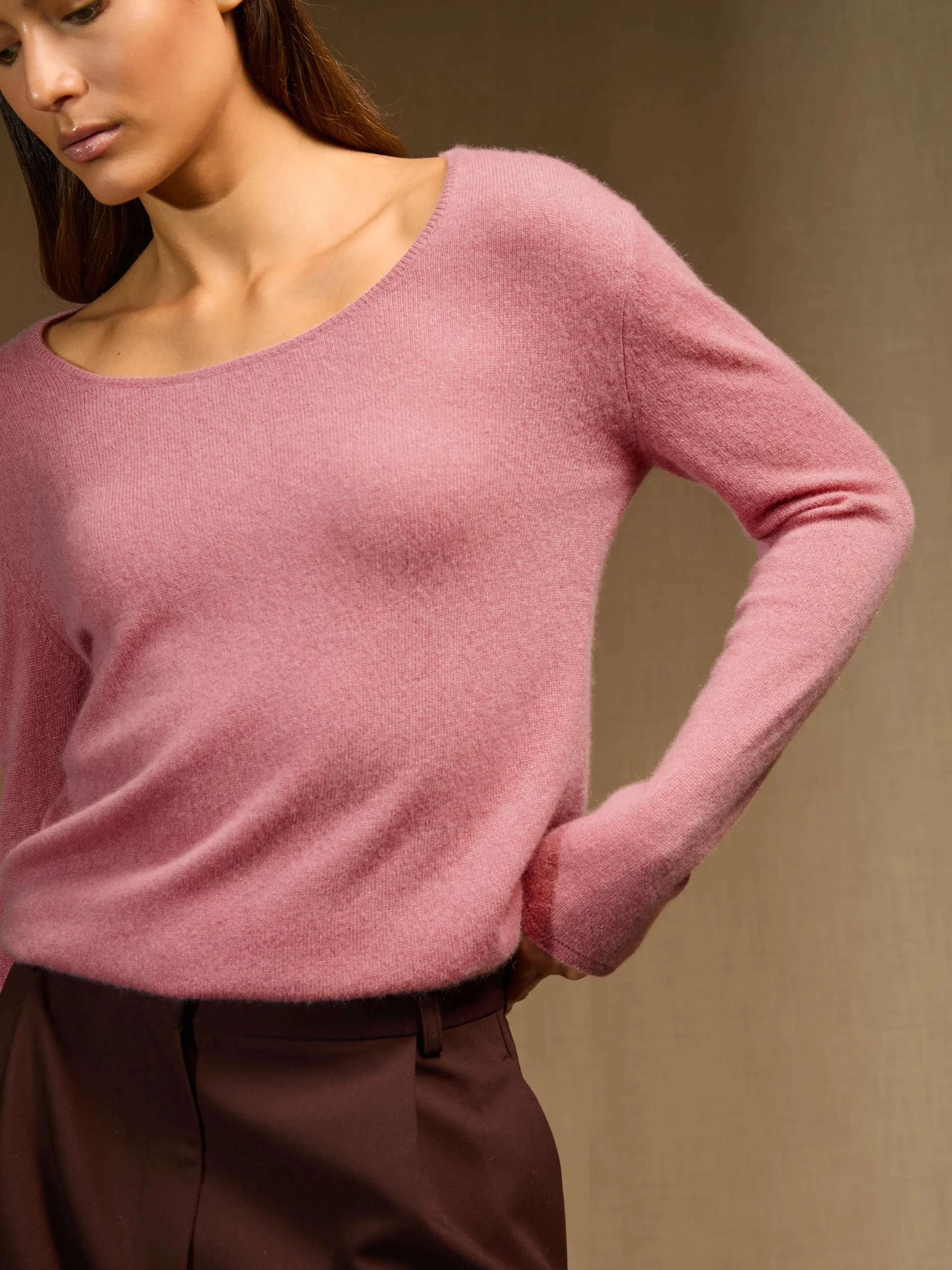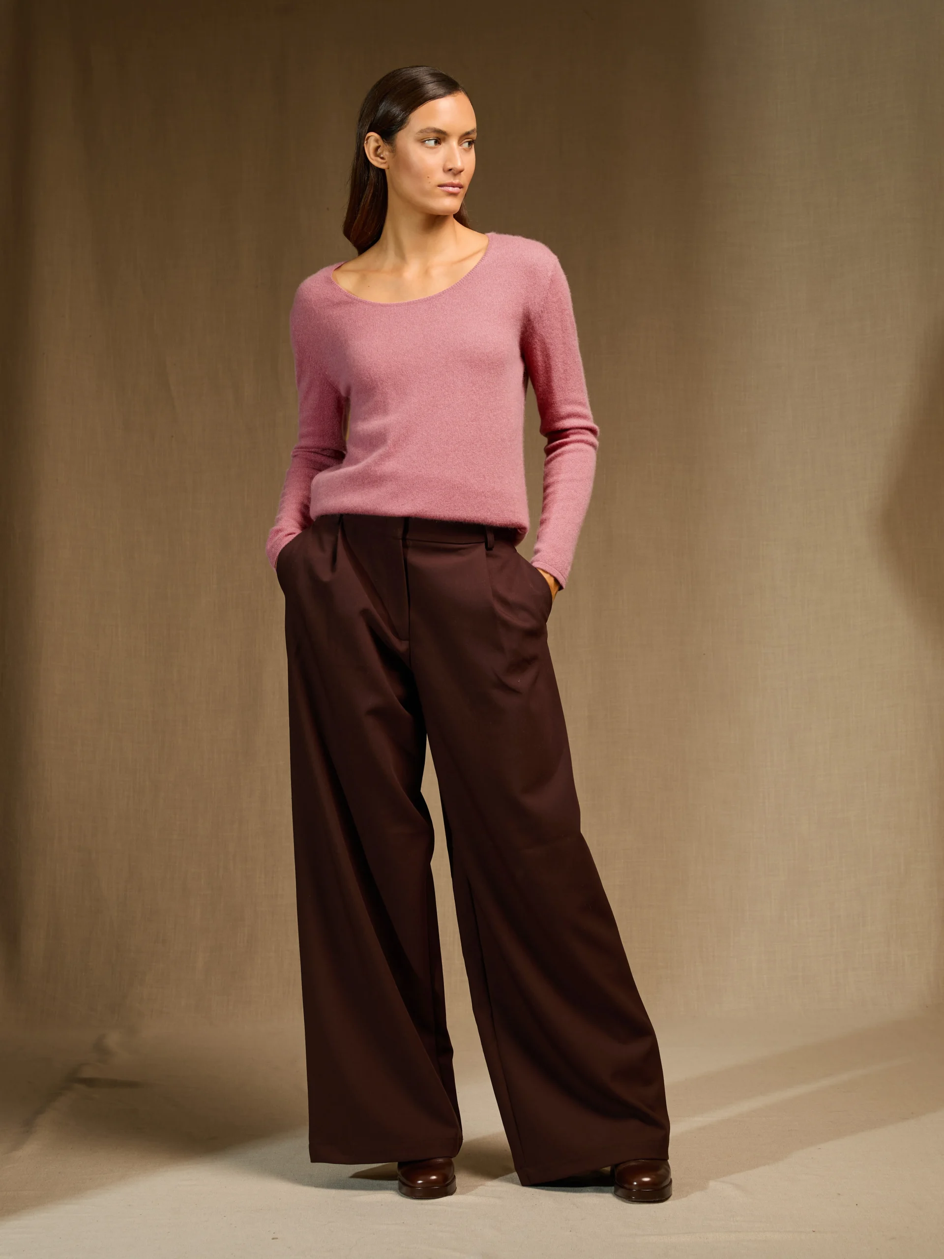 ASHLEY pull col roulé bois de rose 100% cachemire