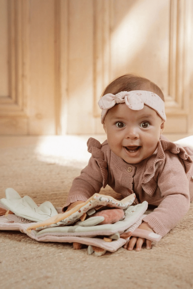 Découvrez le livre d’activités Fairy Garden de la marque Little Dutch ! Le gentil Faon invite à jeter un coup d’oeil dans le jardin magique. Beaucoup de textures et activités à découvrir, comme un petit miroir, un hochet et des jouets cachés. Le livre d’activités tout doux à également différentes étiquettes à toucher. Ce livre stimule non seulement les sens, mais est également bon pour le développement de la coordination main-oeil. Dans la même collection, découvrez la peluche d’activités Faon.