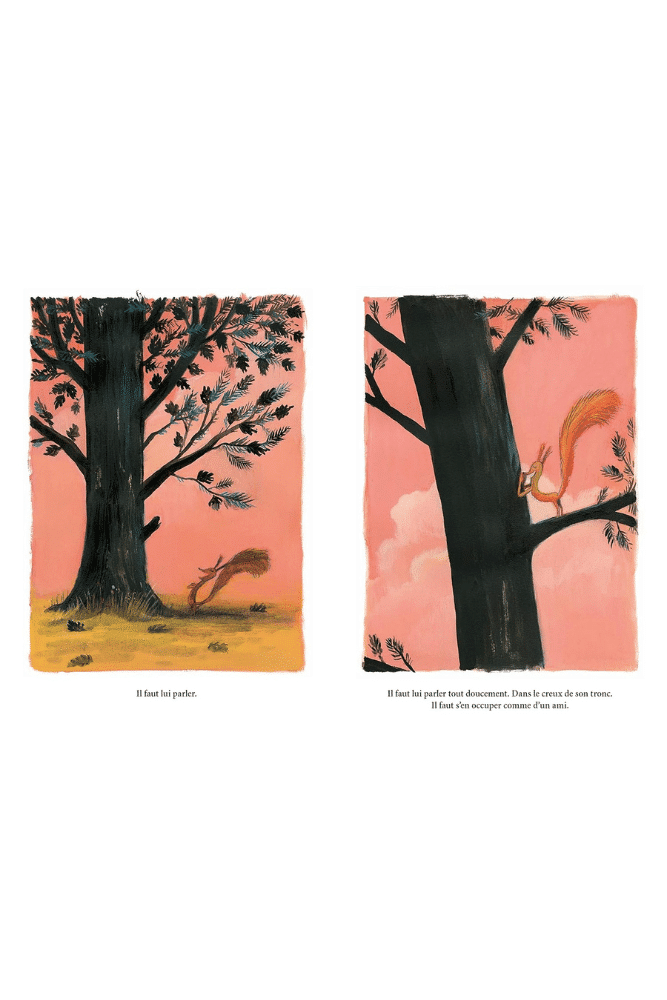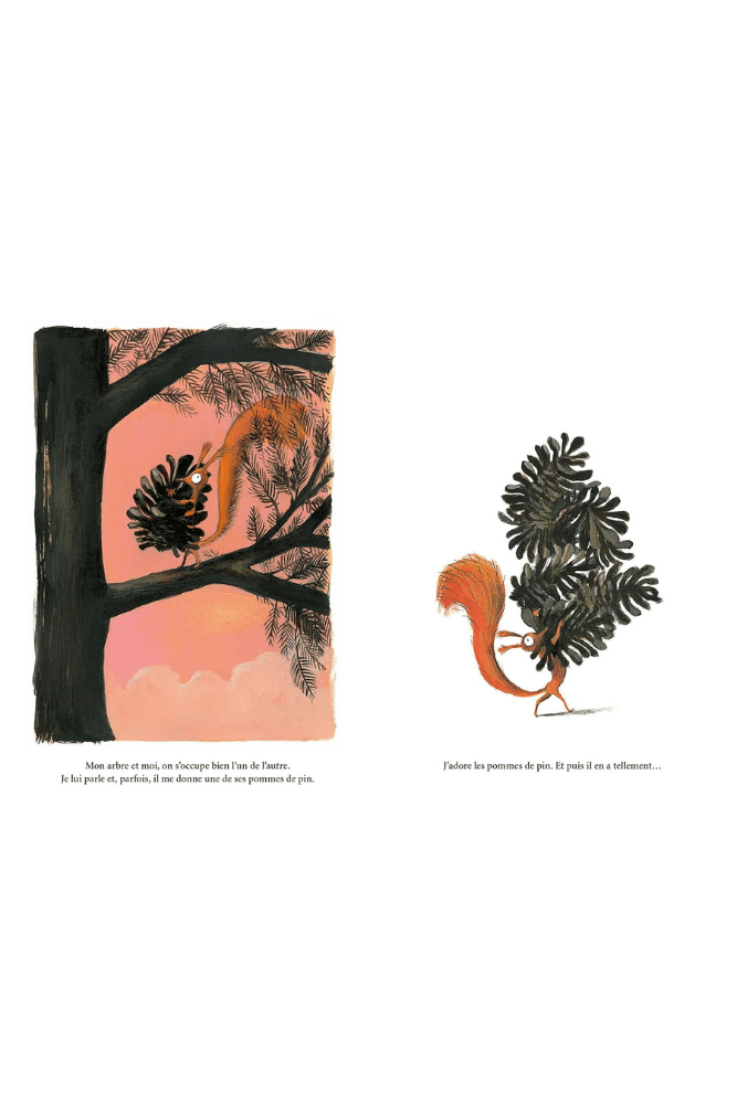 C’est fragile un arbre, il faut en prendre bien soin. Il faut s’en occuper comme d’un ami. Mon arbre et moi, on s’occupe bien l’un de l’autre. Parfois, il me donne une de ses pommes de pin. Une c’est peu, mais attention, toutes c’est beaucoup. Il faut trouver le bon équilibre. Mais si un jour il n’a plus de pommes de pins, il y aura encore ses épines, ses branches ou ses racines…