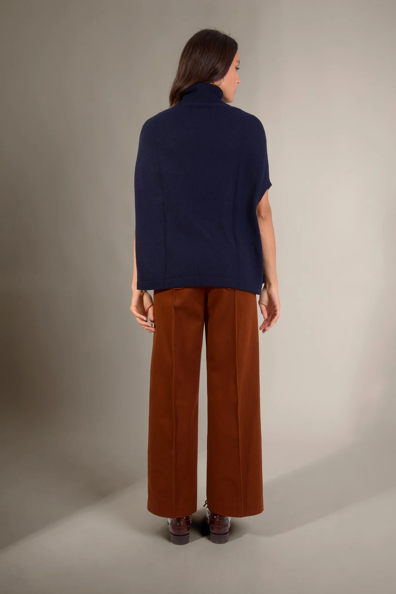 MELINA cape col roulé navy 100% cachemire