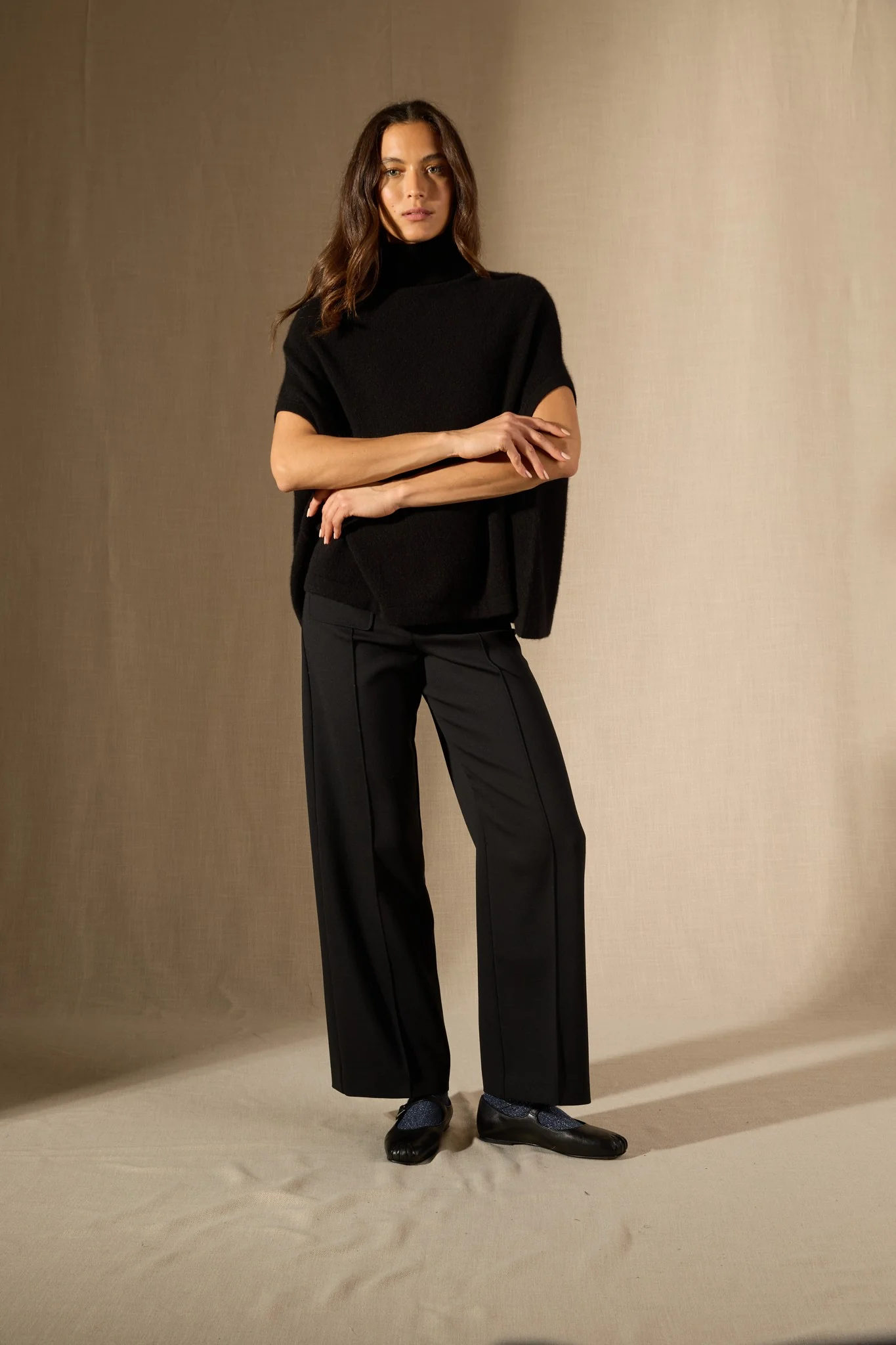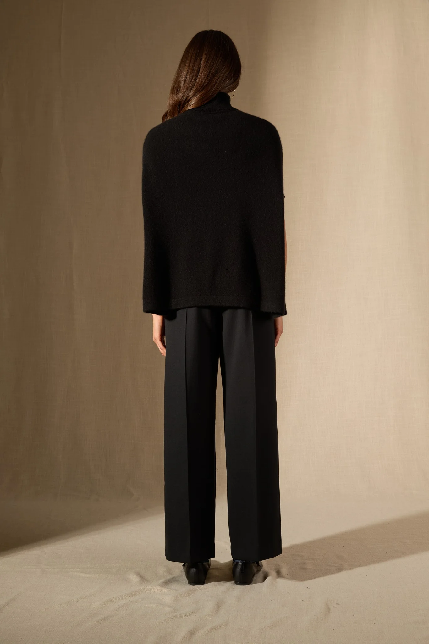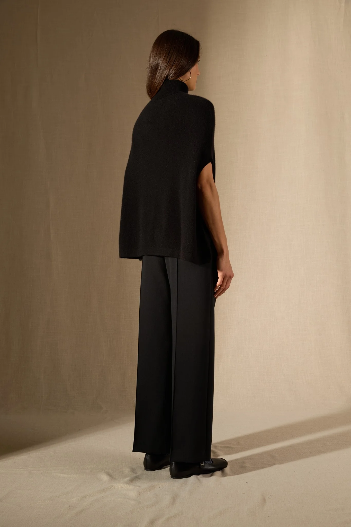 MELINA cape col roulé noir 100% cachemire
