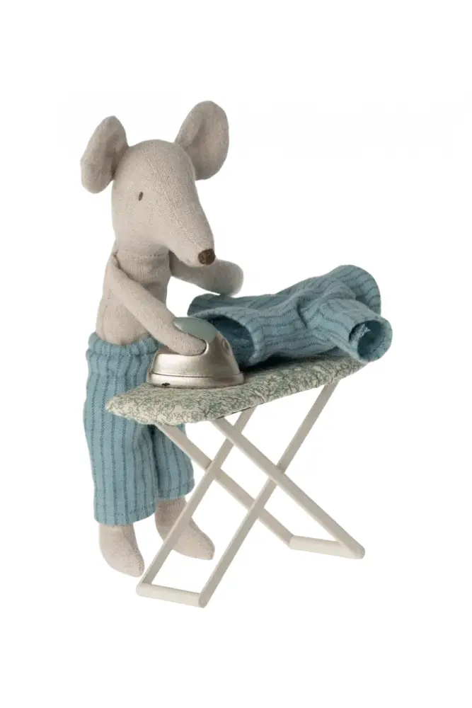 On craque pour cette adorable table à repasser de poupée, recouverte d’une jolie housse en tissu et accompagnée de son petit fer en métal. Un ravissant jouet pour s’amuse à repasser les habits des petits lapins Maileg ou autre poupée.
