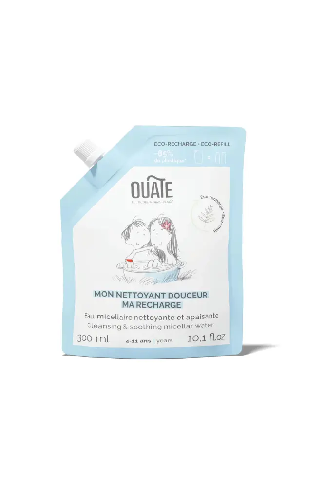 Mon nettoyant douceur de Ouate Paris en format recharge. Les enfants passent leur temps à jouer, s’amuser et découvrir le monde avec une énergie débordante. Leur peau est exposée à la pollution et à la poussière bien plus que celle des adultes, tout en étant trois à quatre fois plus fine et délicate. Mon nettoyant douceur nettoie, hydrate et apaise la peau instantanément.