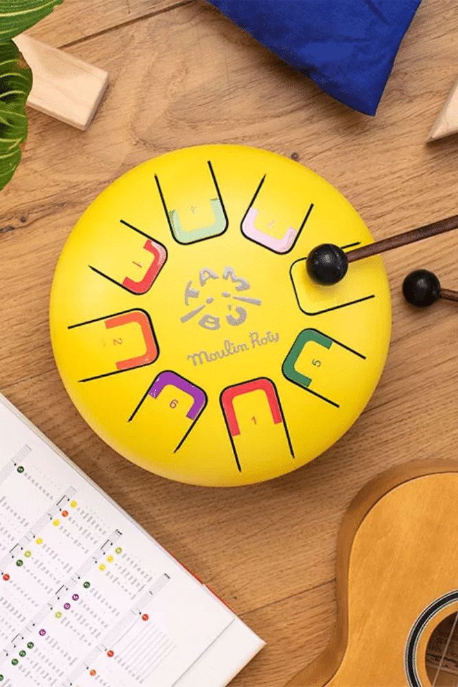 Découvrez le Tambour à languettes Popipop de Moulin Roty ! Un jouet musical ludique et captivant, parfait pour éveiller les sens des plus petits. Ce tambour est conçu avec des languettes en métal qui émettent des sons amusants lorsque l’enfant les frappe, offrant une expérience sonore agréable et stimulante. Ce tambour est accompagné d’un bâtonnet et d’un livre à partition. Vous pouvez retrouver les modèles Dans la jungle et Après la pluie.