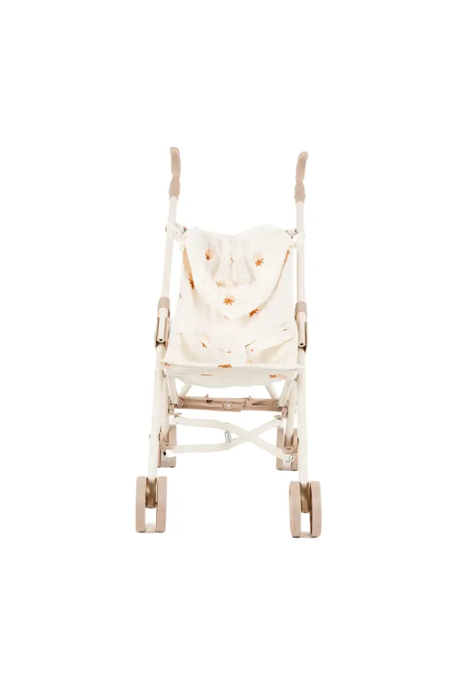 Découvrez la poussette canne fabriquée en coton biologique avec son motif fraise. Cette poussette pour poupée dispose d’un sac en forme de coeur où votre enfant pourra ranger ses petits accessoires. Elle possède des roues doubles et une structure en métal.