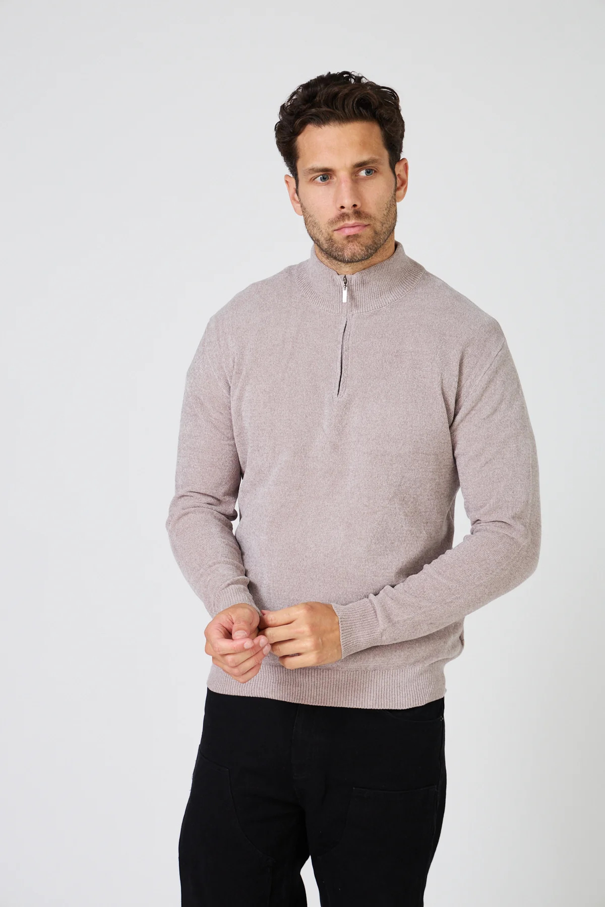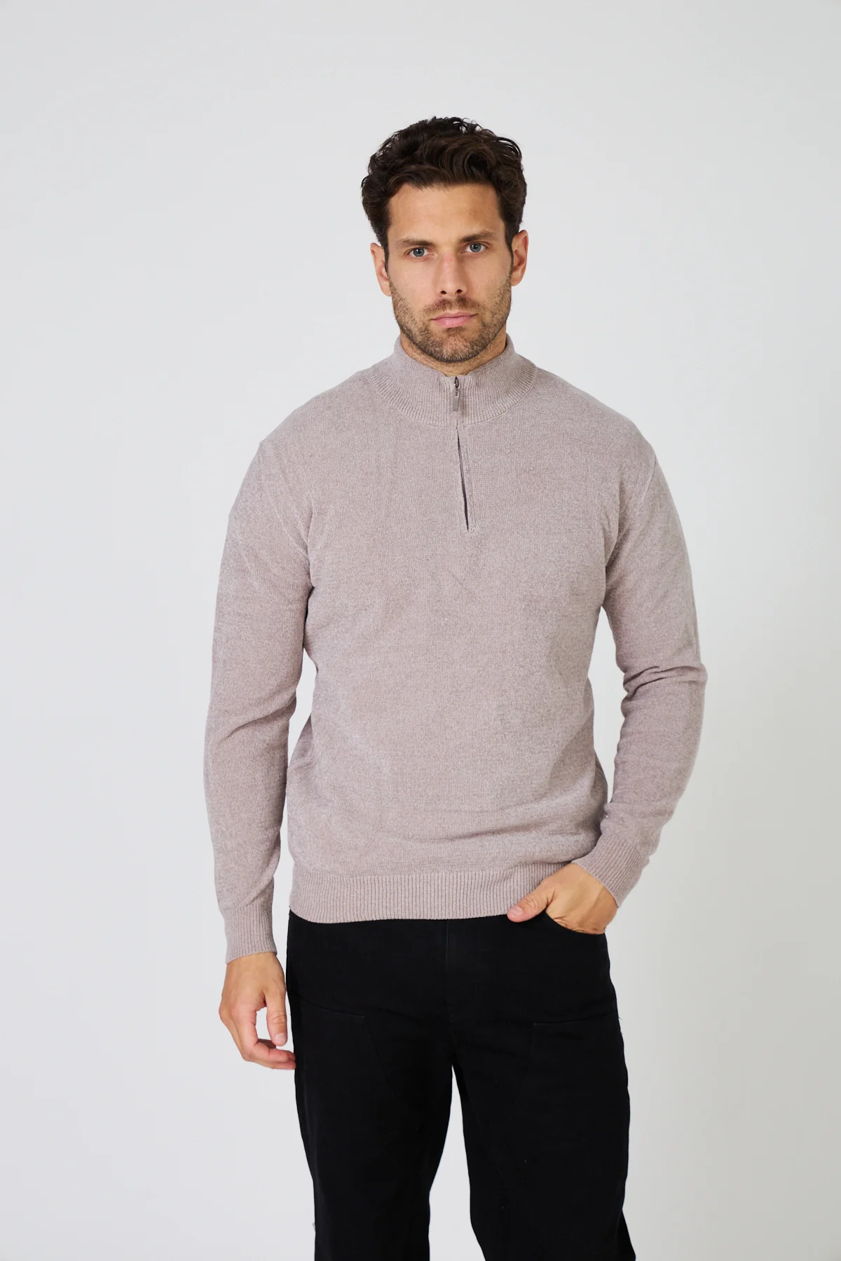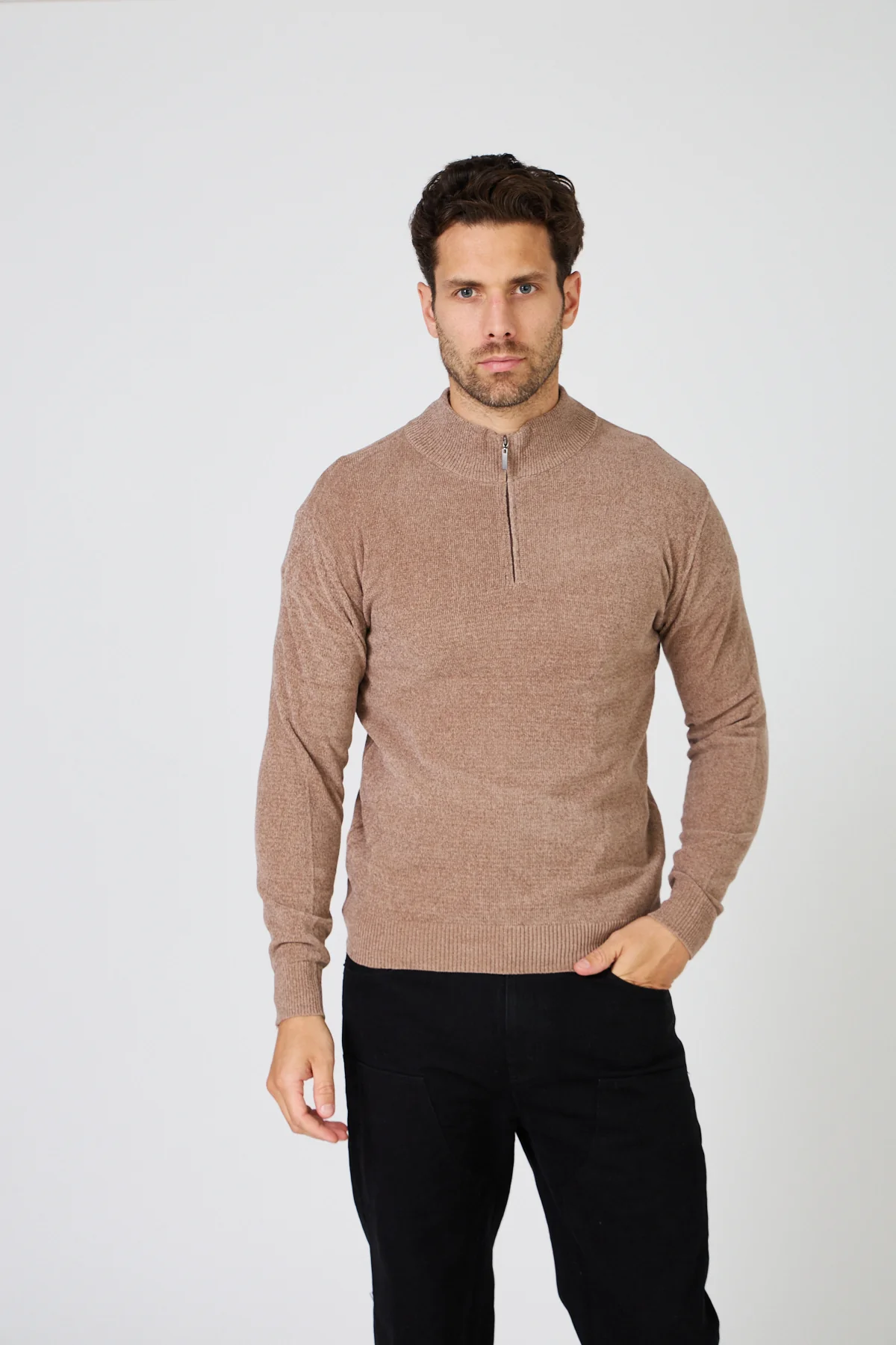 Pull Homme Maille Fine Douce – Col Montant Zippé