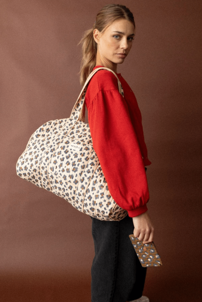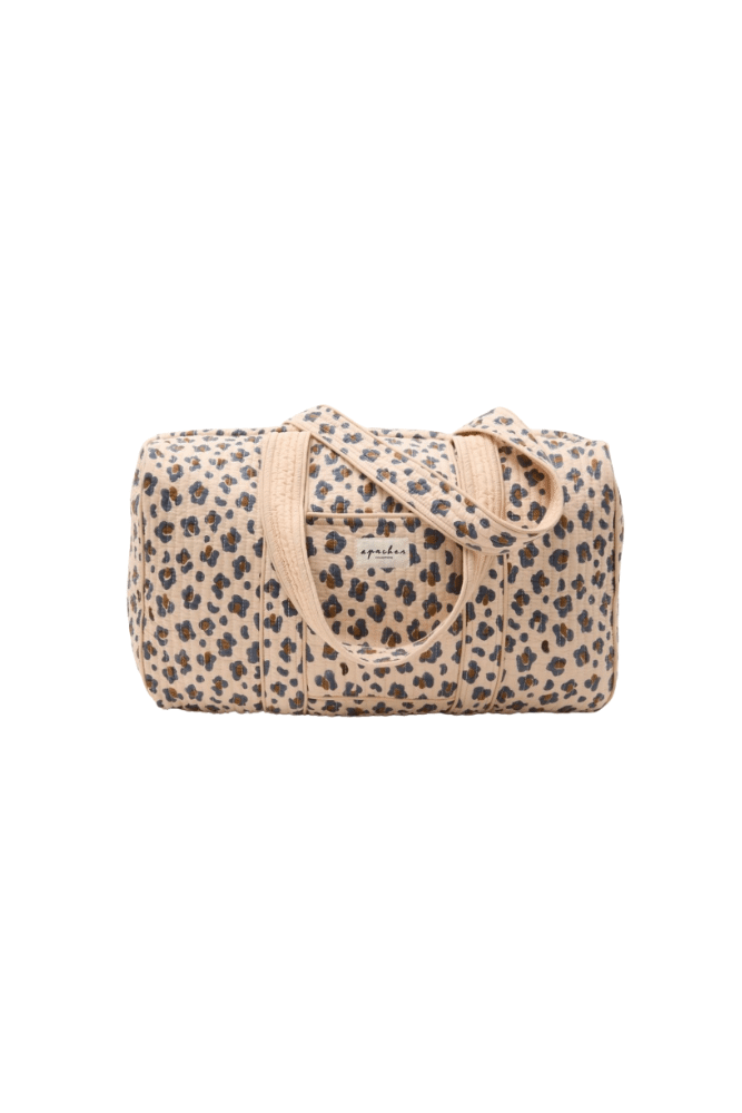 Découvrez le sac Buddha en coton matelassé à l’imprimé Léopard de la marque Apaches Collection. Pratique avec ses poches plaquées, il se transforme facilement en sac à langer ou sac week-end. Léger et fonctionnel, il accompagne vos déplacements avec une touche féline et tendance.