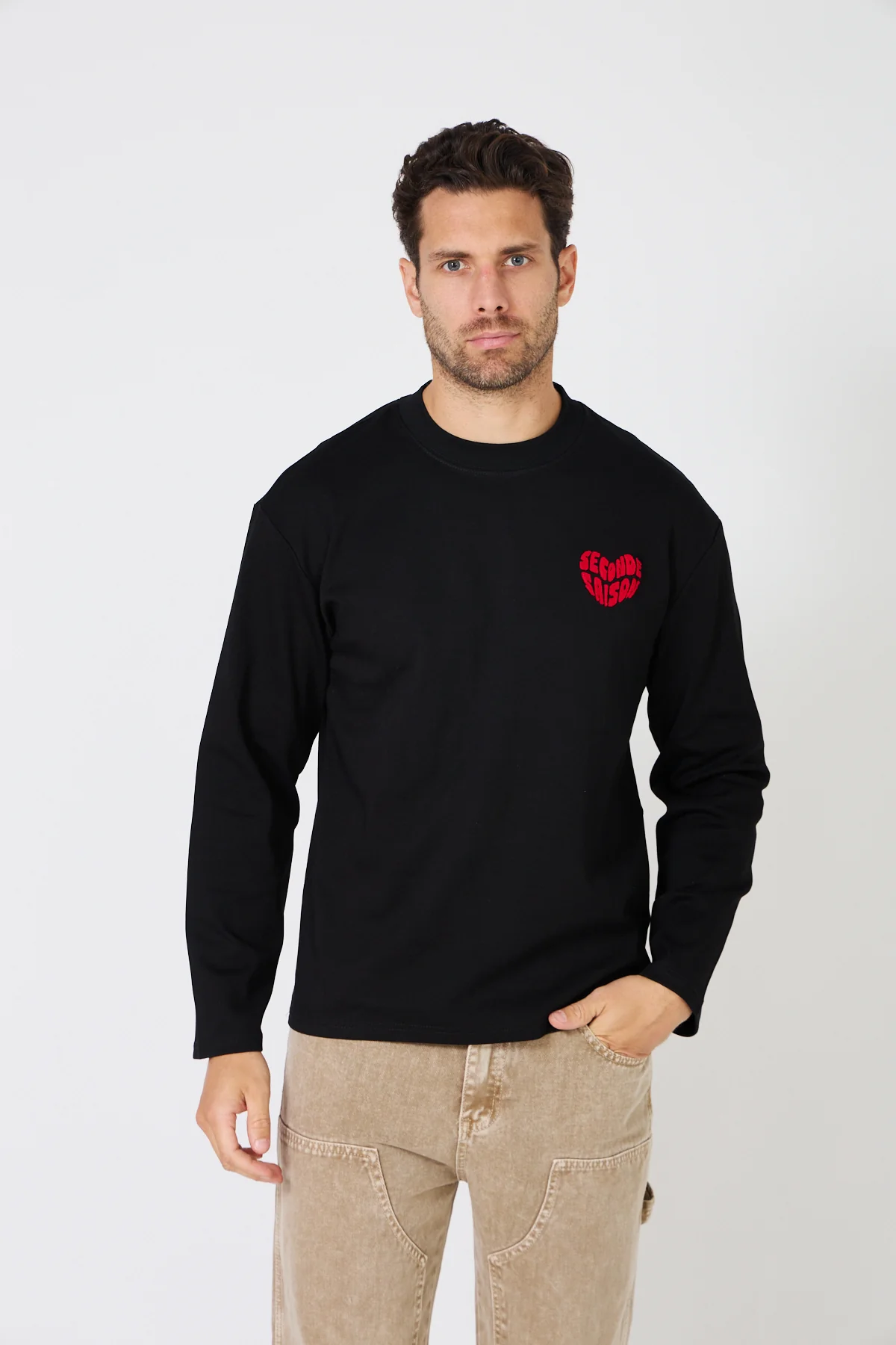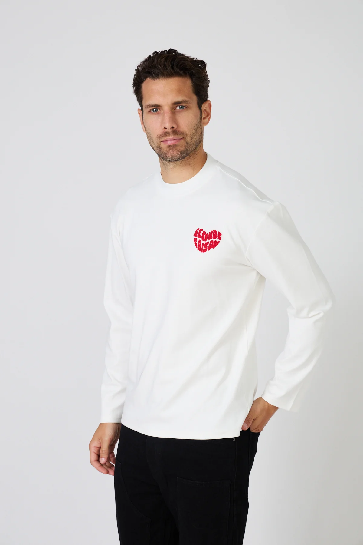 T-Shirt Manches Longues – Coeur Rouge Brodé ‘Seconde Saison’