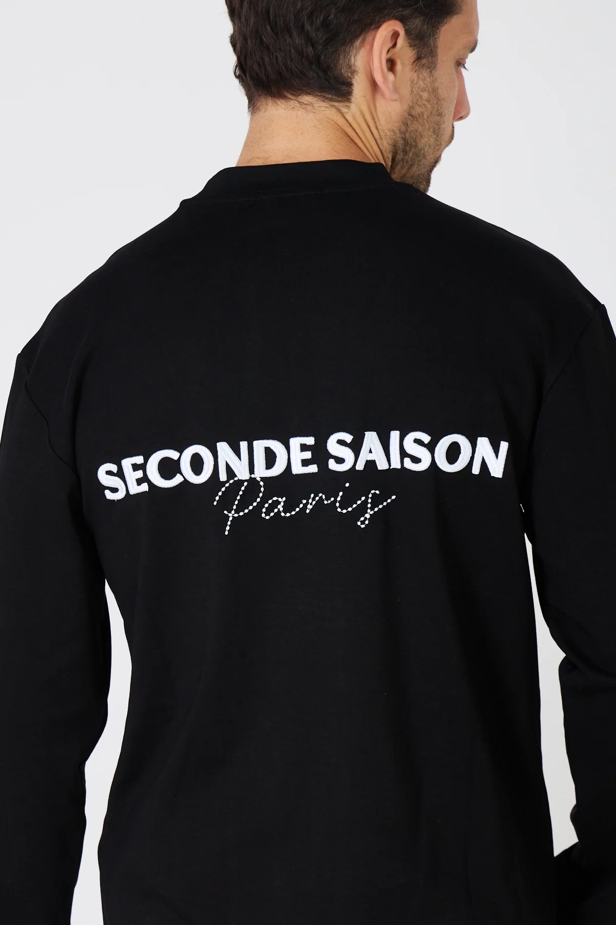 T-Shirt Manches Longues Oversize – Logo ‘Seconde Saison Paris’ Brodé – Noir