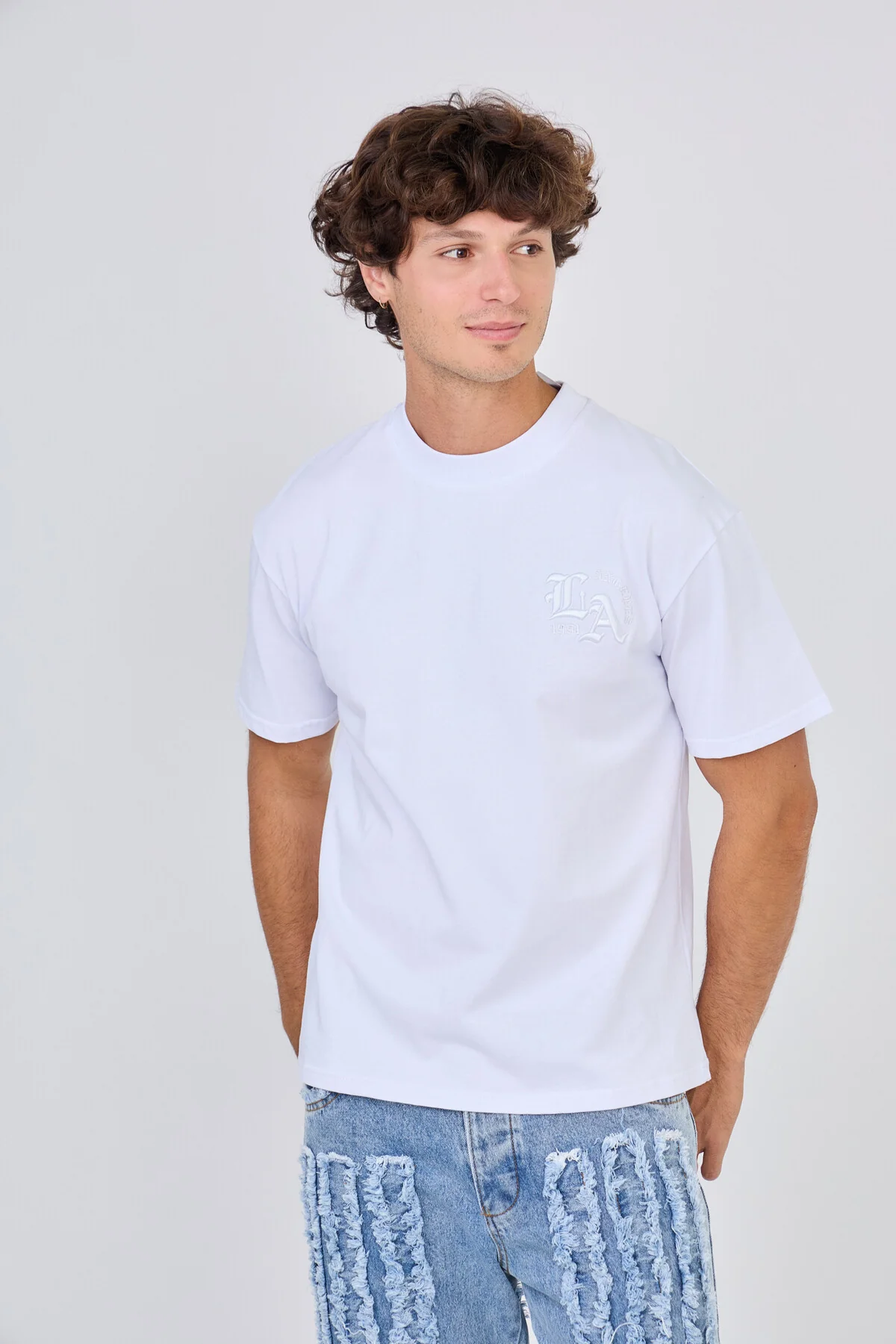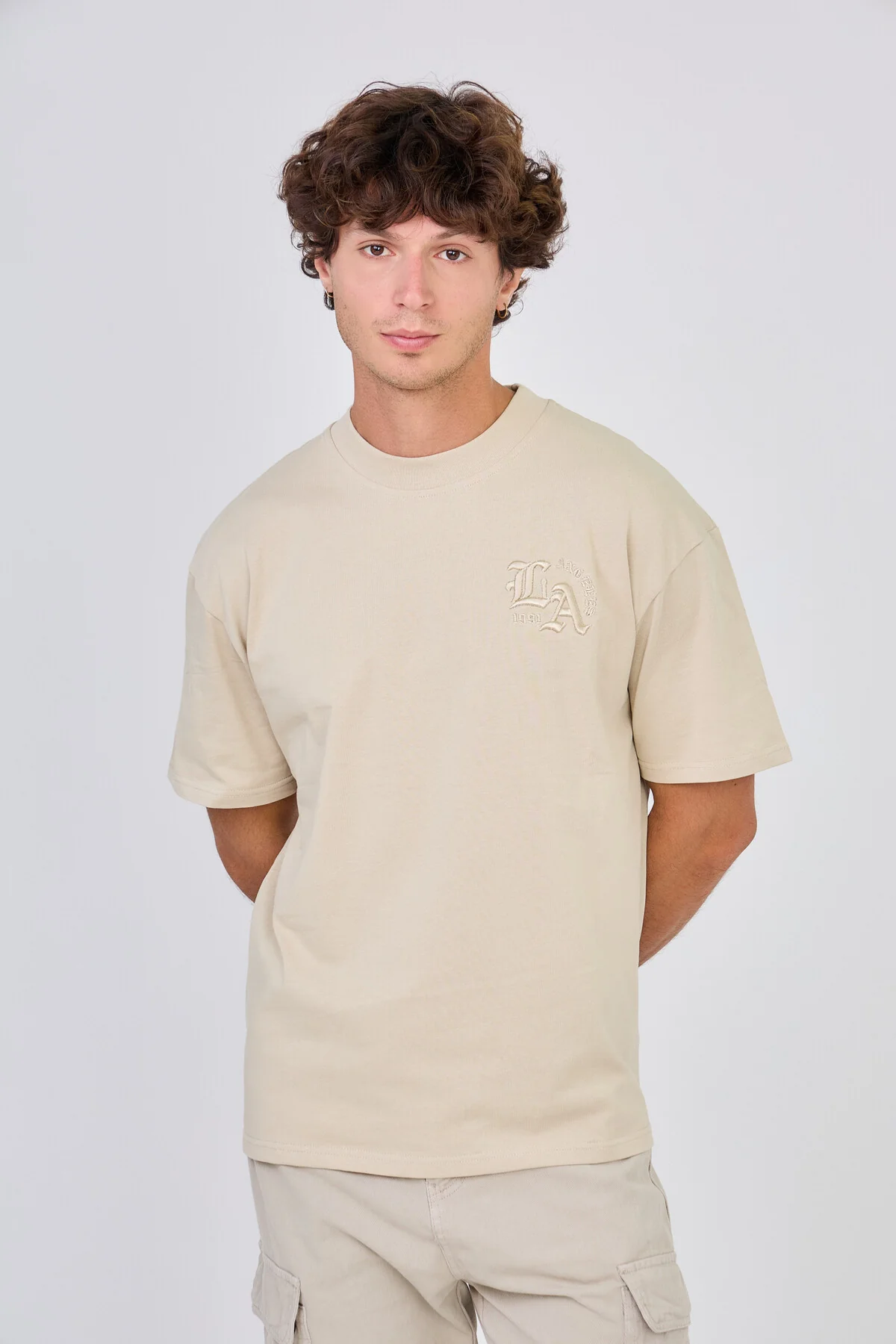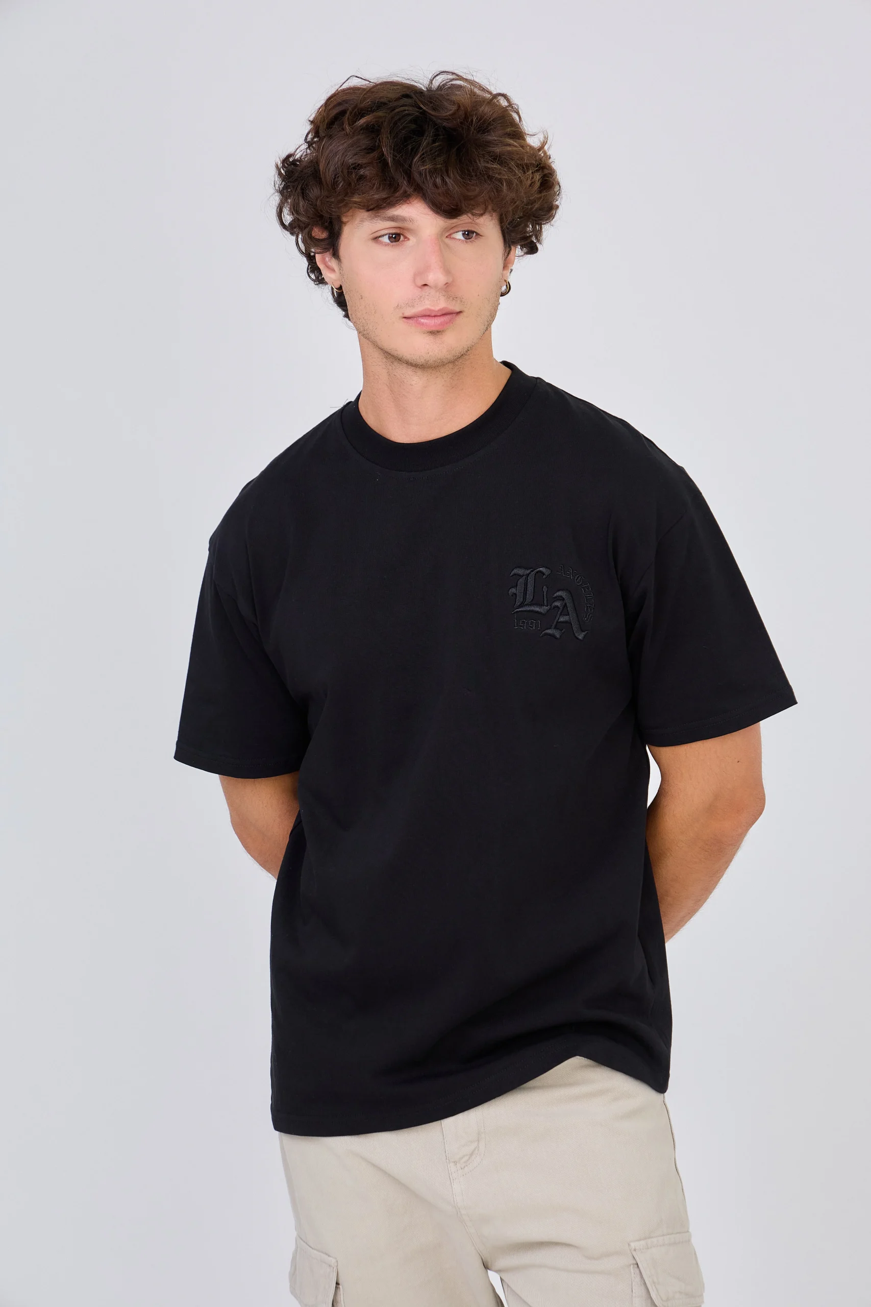 Ce t-shirt avec broderie et motifs ton sur ton allie confort et modernité, idéal pour créer des looks décontractés tout en restant tendance. Conçu dans un coton doux et épais, il offre un tombé structuré et une silhouette ample, parfaite pour un style streetwear minimaliste et polyvalent.