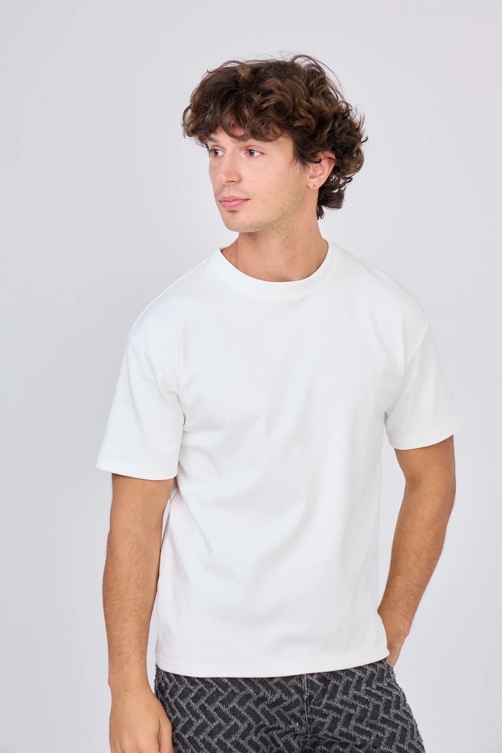 Ce t-shirt pour homme allie confort et modernité, idéal pour créer des looks décontractés tout en restant tendance. Conçu dans un coton doux et épais, il offre un tombé structuré et une silhouette ample, parfaite pour un style streetwear minimaliste et polyvalent.