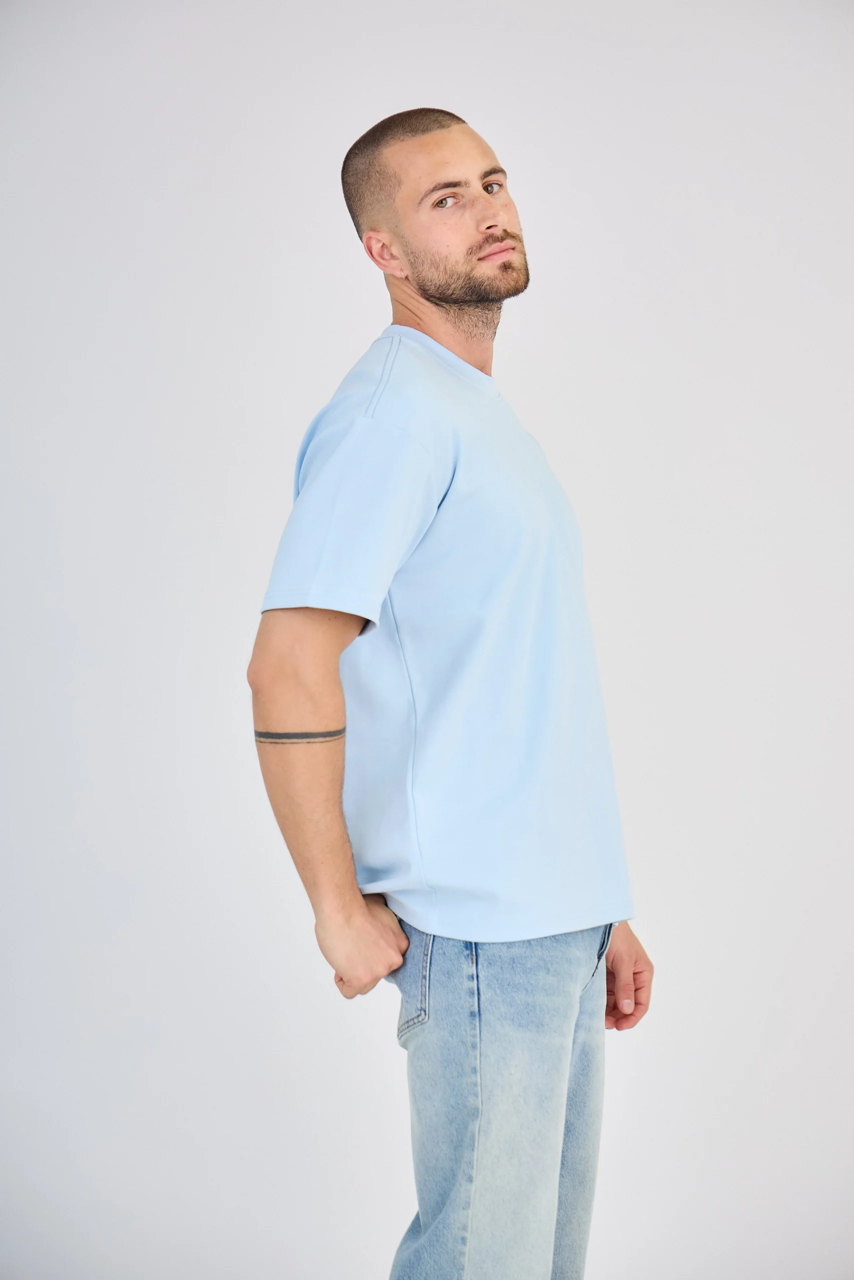 T-Shirt uni à manches courtes – Bleu Clair