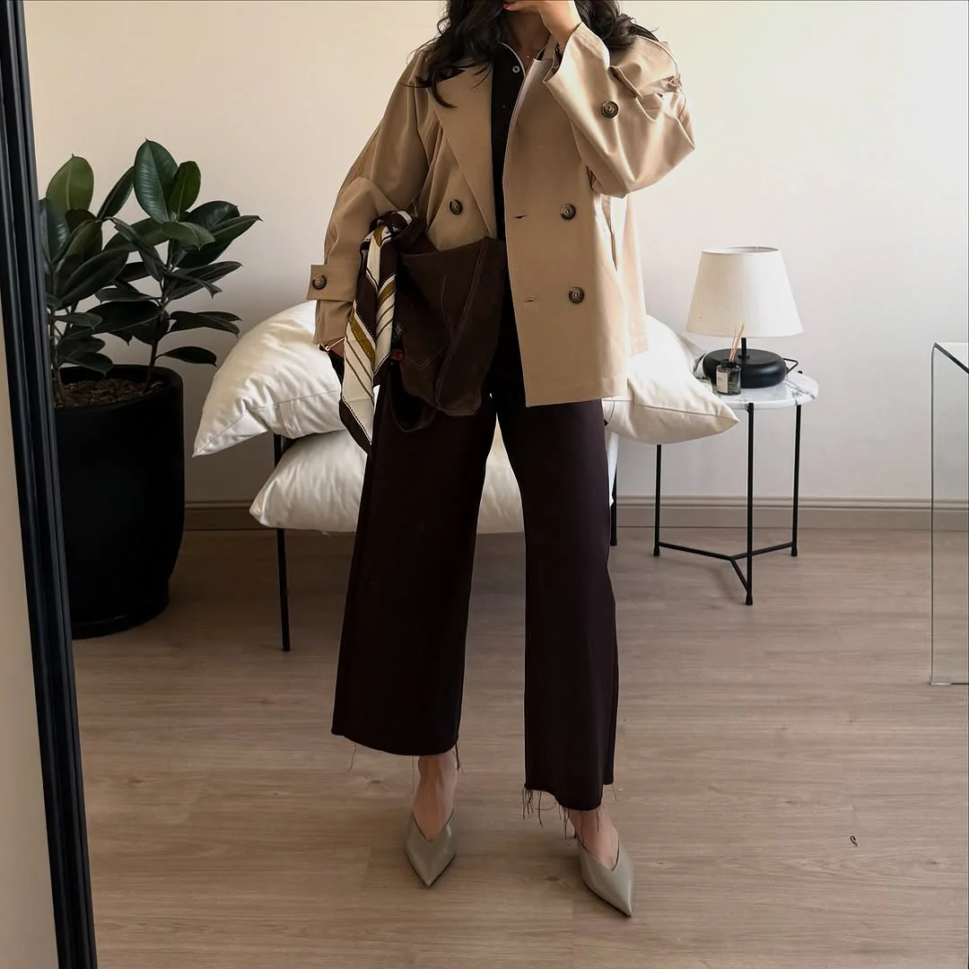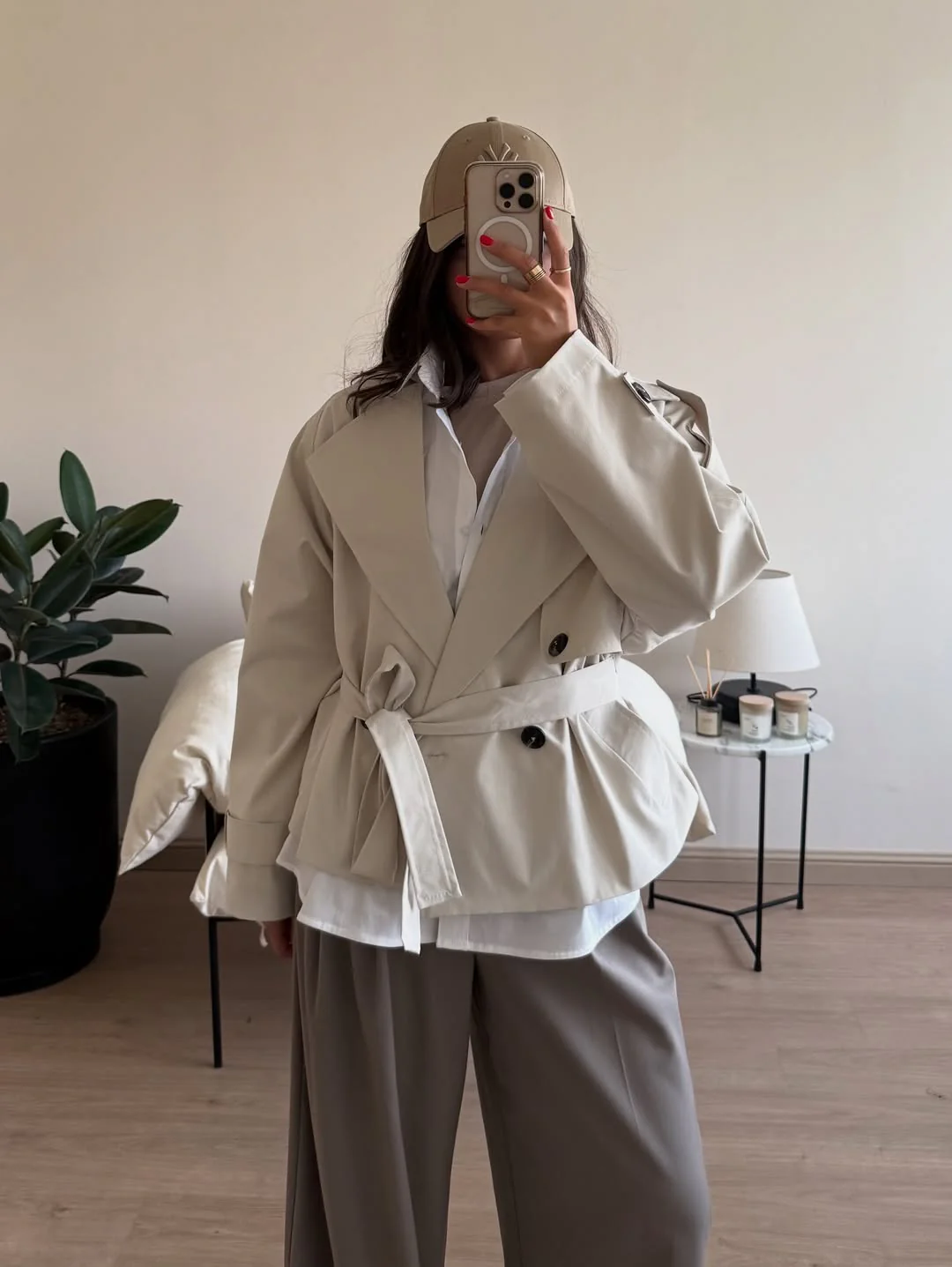 Modernisez vos looks de mi-saison avec notre veste trench courte, l’alternative contemporaine au trench classique. Sa coupe structurée et son double boutonnage apportent une élégance immédiate à toute silhouette.