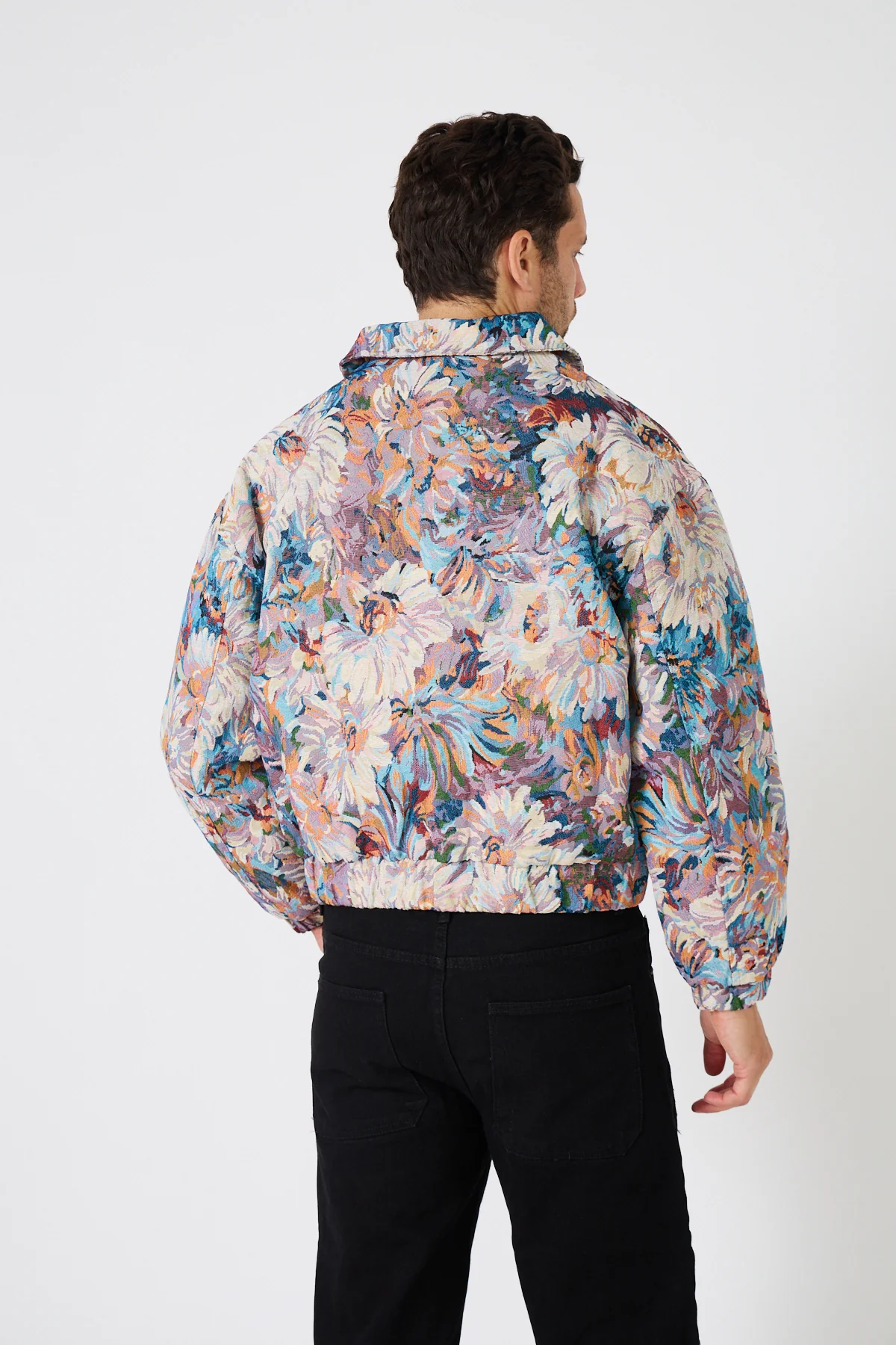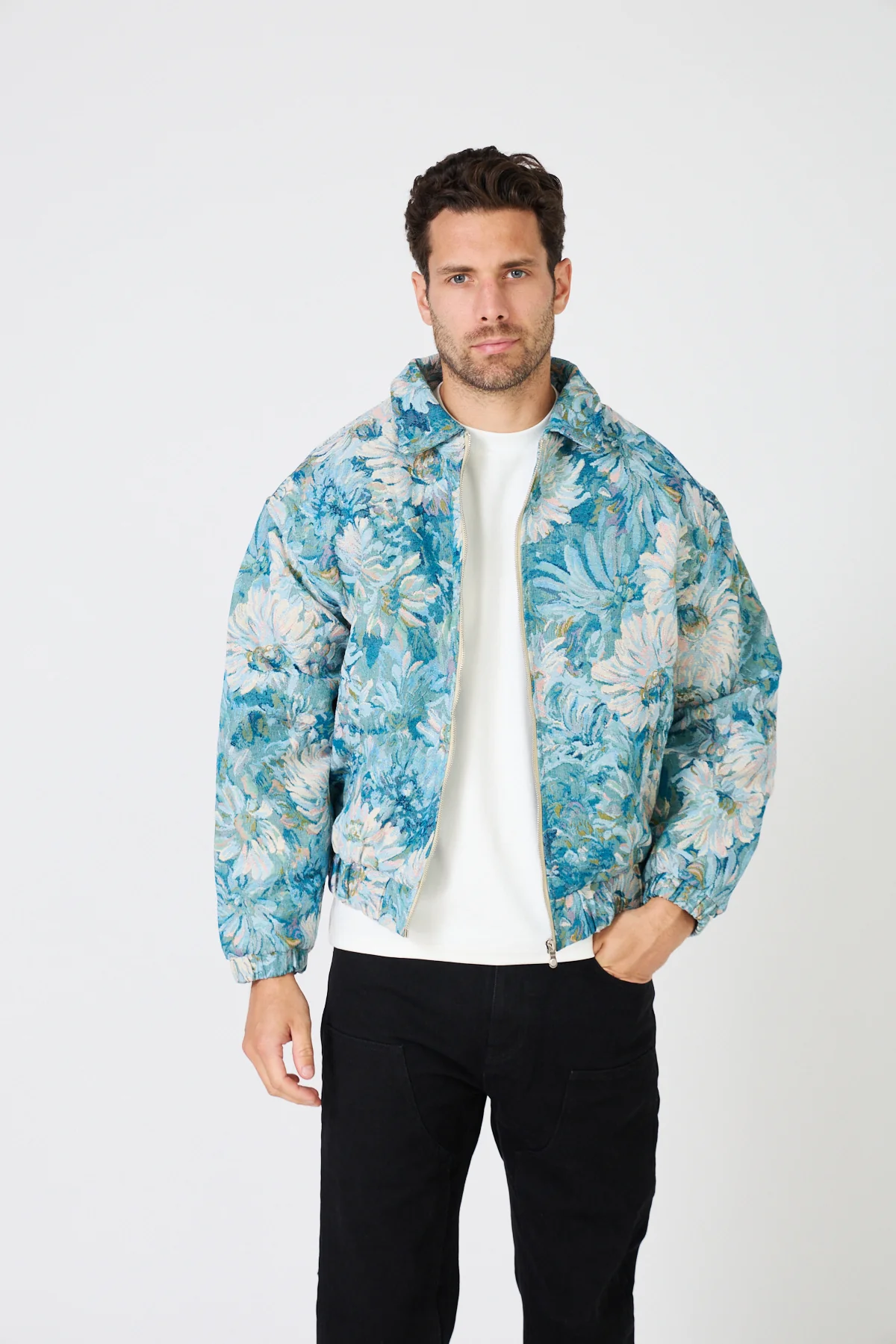 Veste zippée jacquard pour homme à motif floral, alliant élégance et chaleur. Idéale pour les journées froides de l’hiver, elle offre un confort optimal grâce à ses matières isolantes et une coupe moderne facile à porter.