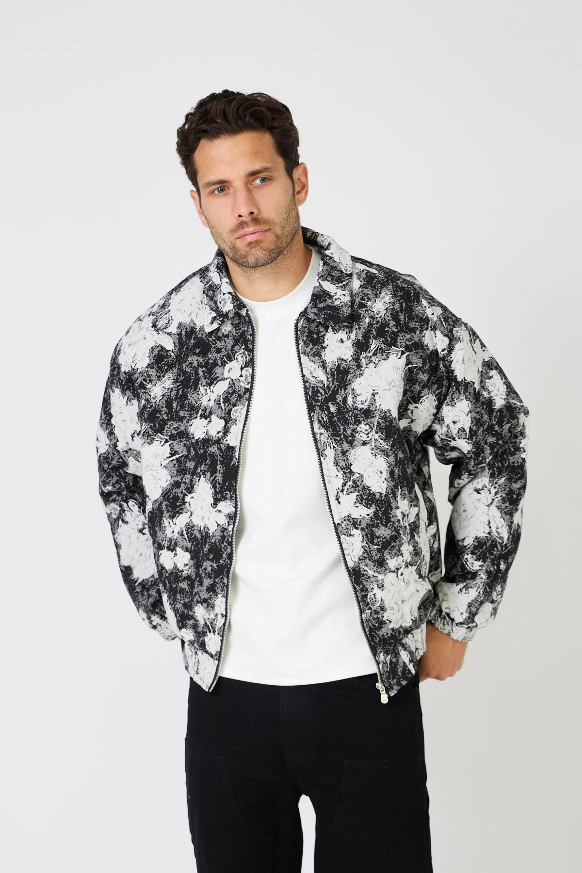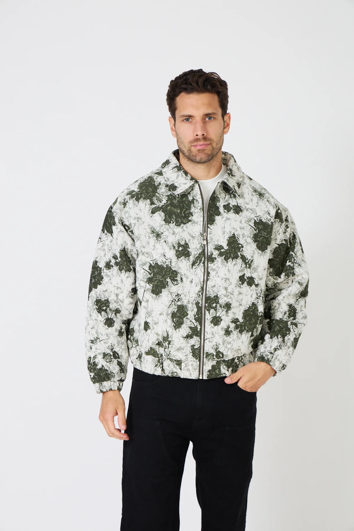 Veste zippée jacquard pour homme à motif floral, alliant élégance et chaleur. Idéale pour les journées froides de l’hiver, elle offre un confort optimal grâce à ses matières isolantes et une coupe moderne facile à porter.