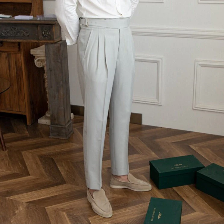 Adoptez une allure impeccable avec le pantalon habillé Yves, pensé pour l’homme contemporain qui valorise autant le confort que la prestance. Sa taille haute et ses pinces structurées créent une silhouette sophistiquée, parfaite aussi bien pour le bureau que pour les occasions plus raffinées.